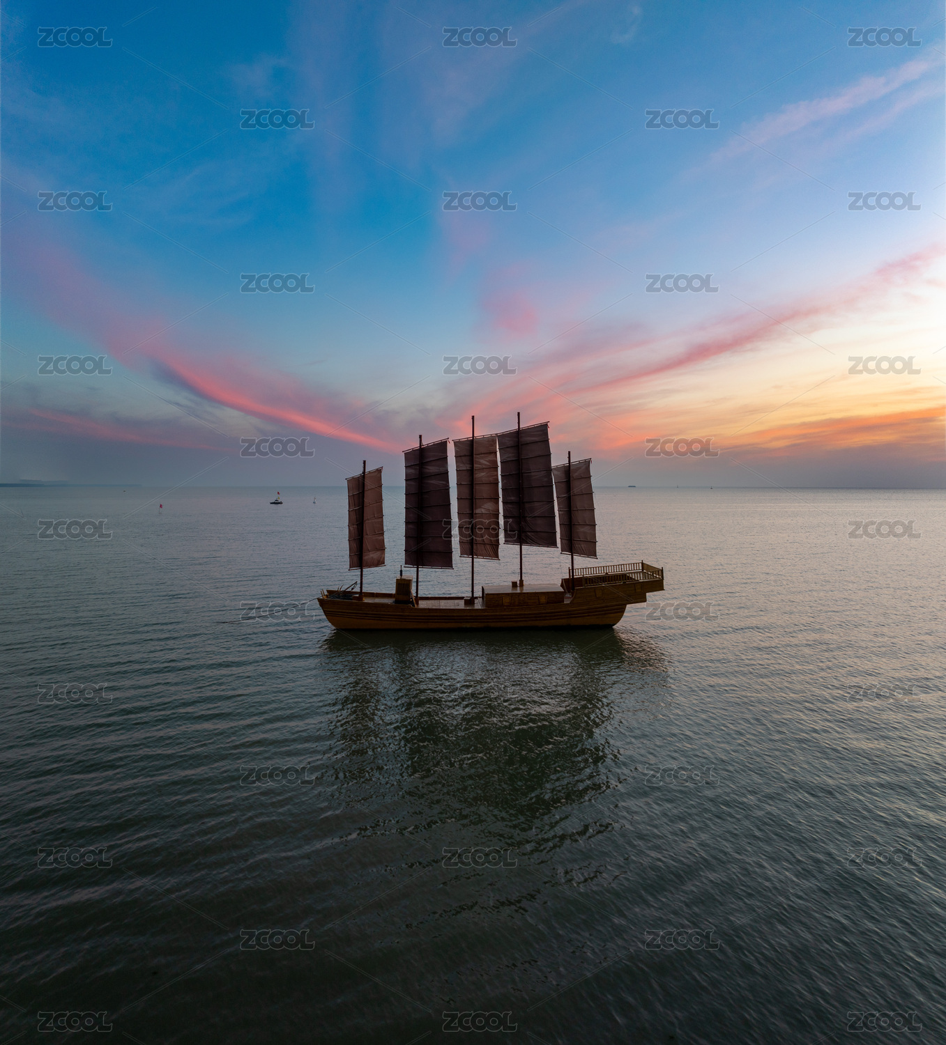 江苏淮安:史诗级晚霞中的洪泽湖帆船