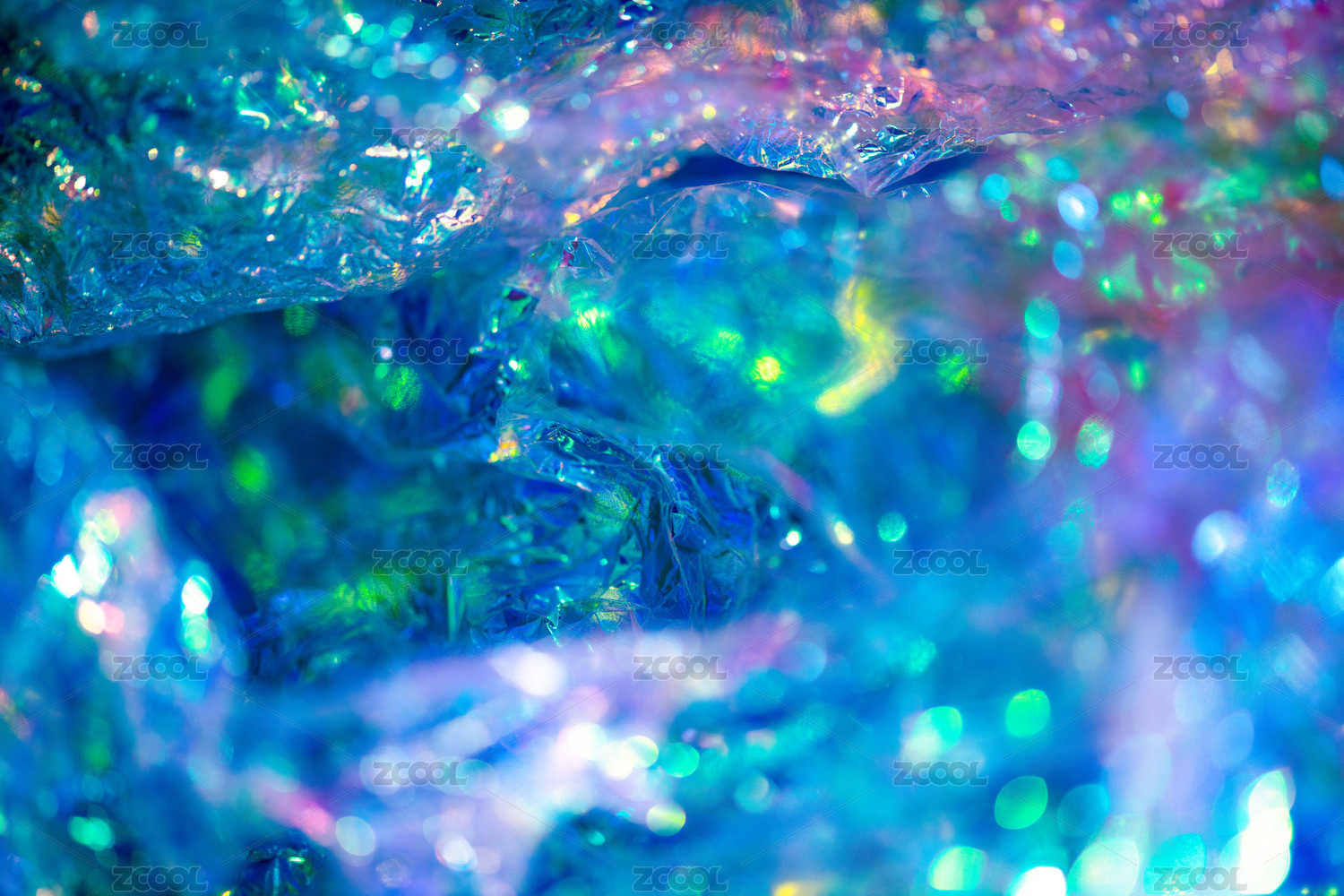 微距拍摄星形镭射全息激光纸反射出的多重色彩