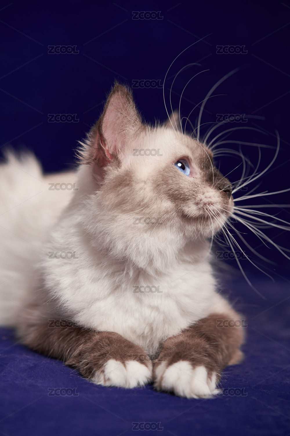蓝色背景上的重点色暹罗宠物猫摄影图