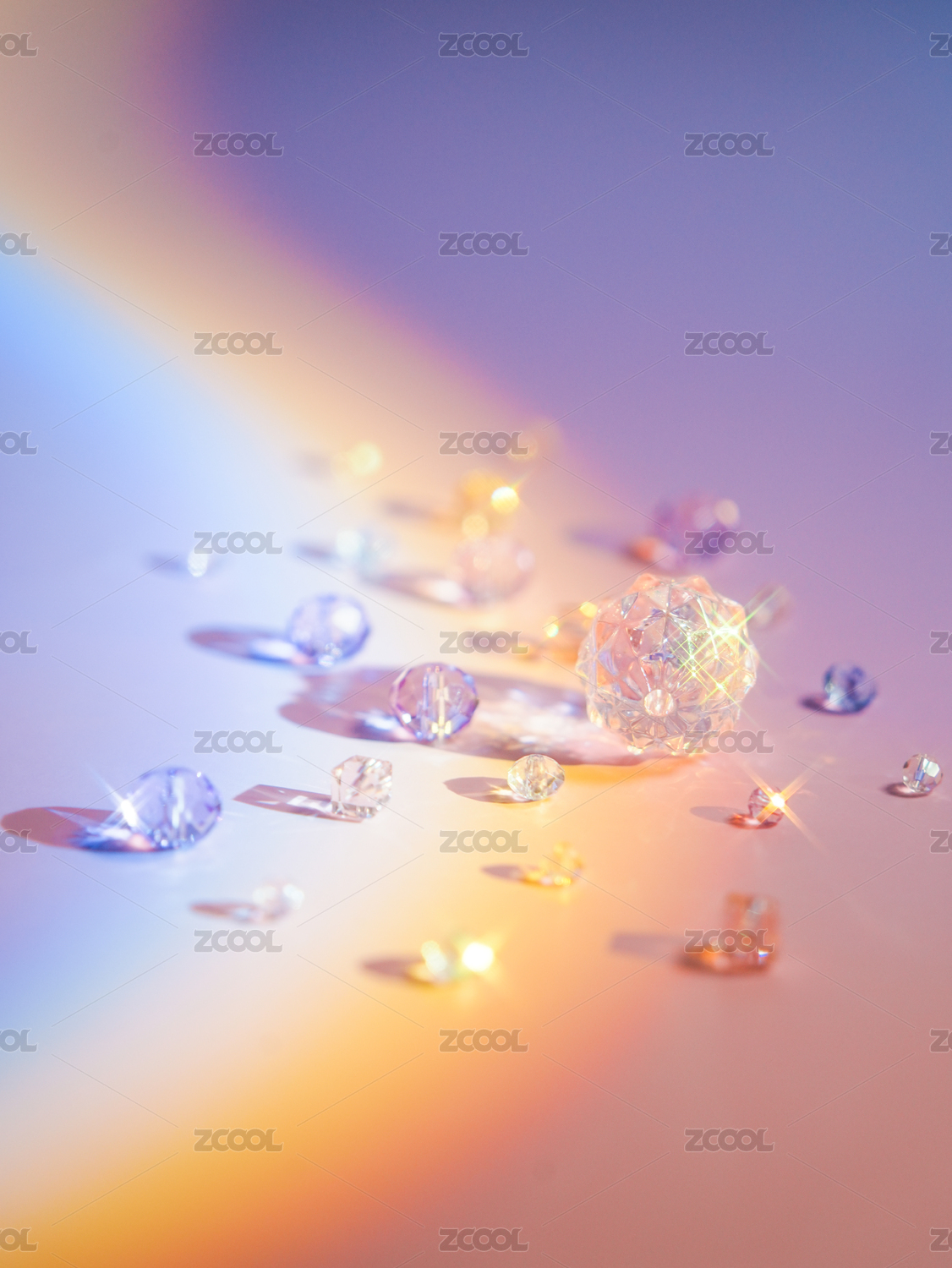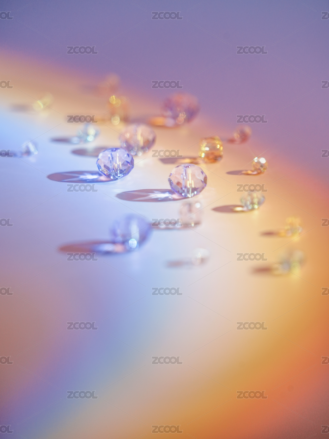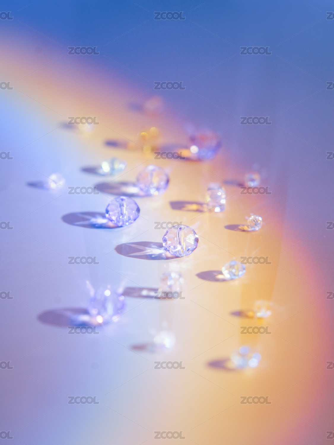 彩虹灯光下的水晶亚克力珠子
