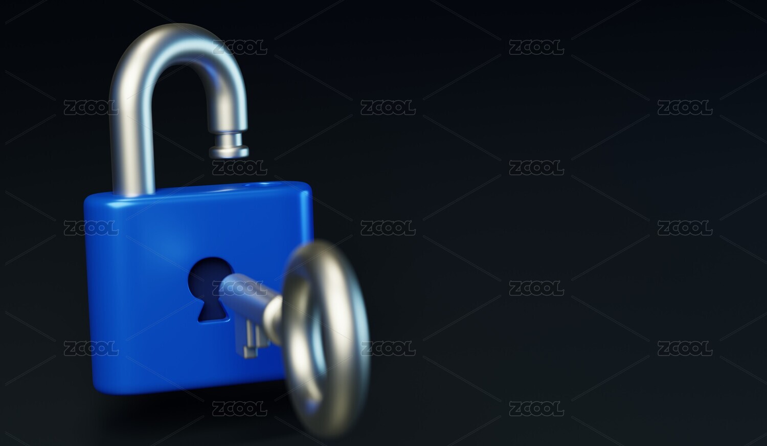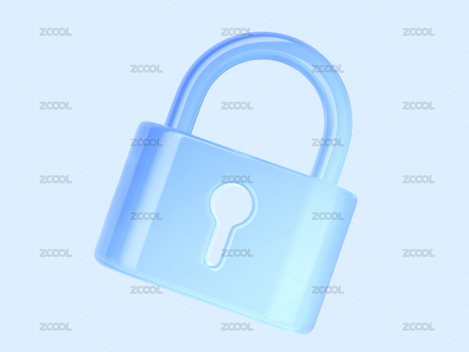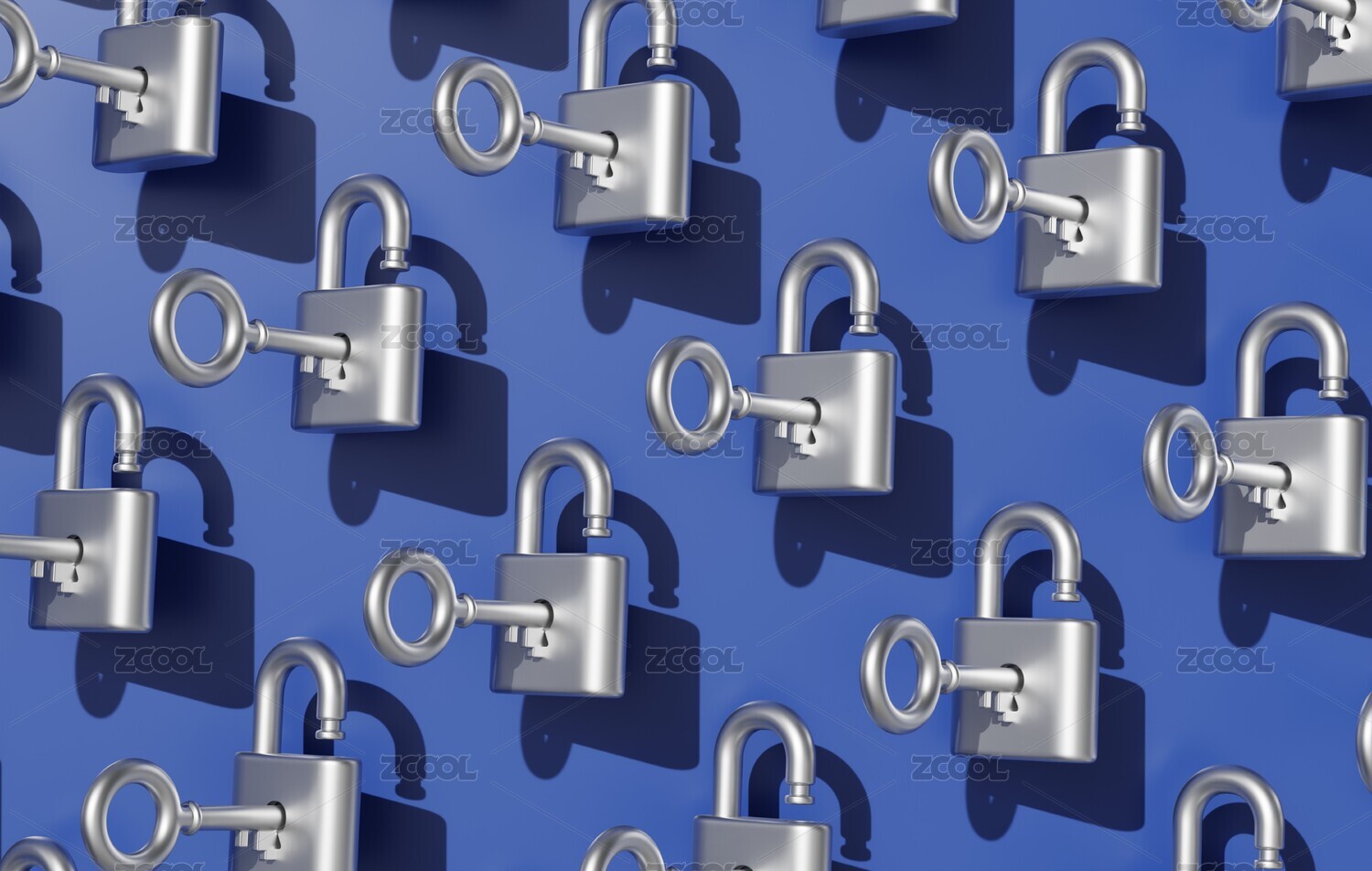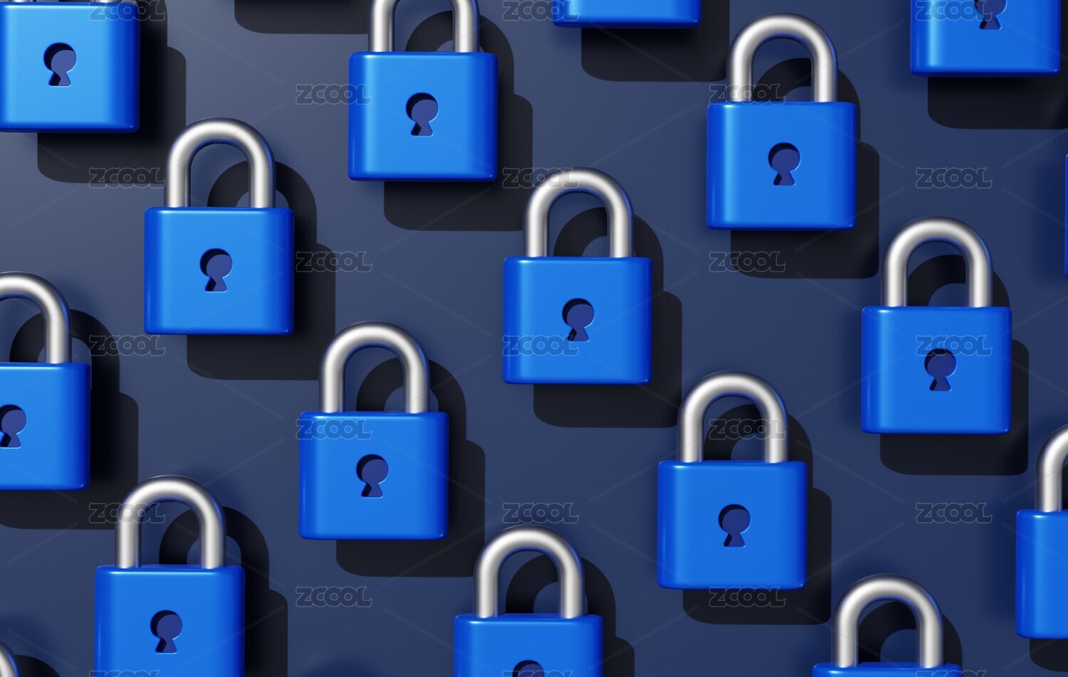 科技蓝透光玻璃锁头锁定加密安全智能概念图