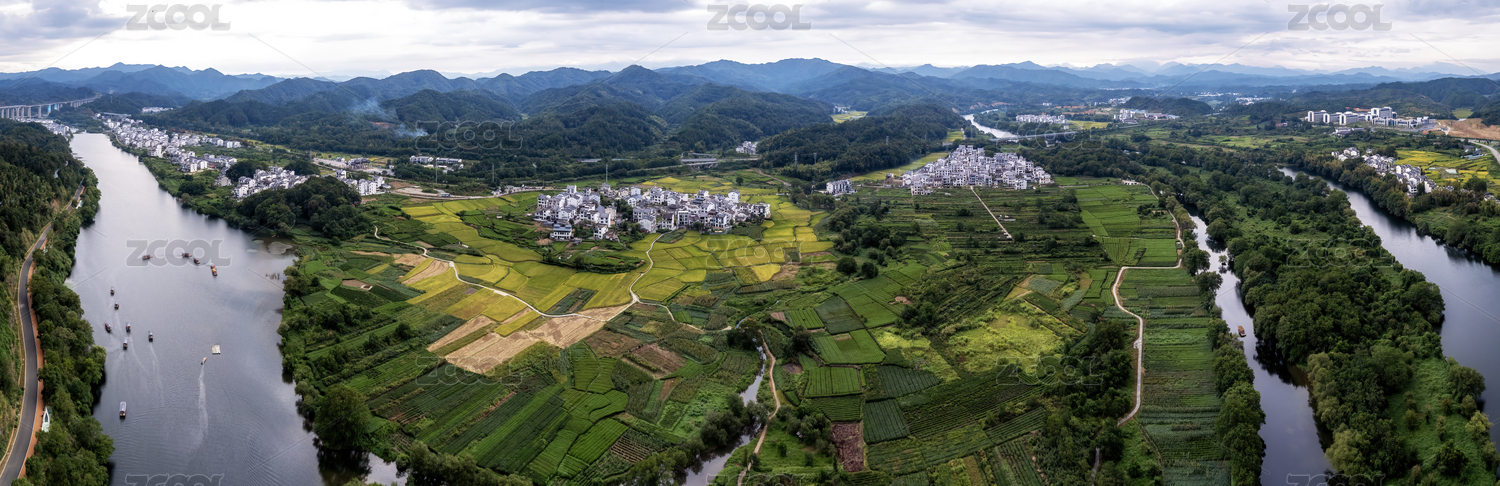 航拍婺源月亮湾田园生态全景