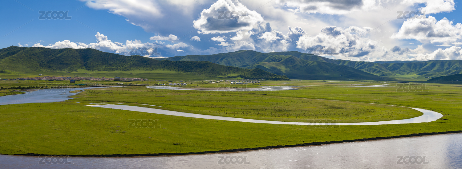 四川阿坝红原月亮湾景区观红原大草原全景