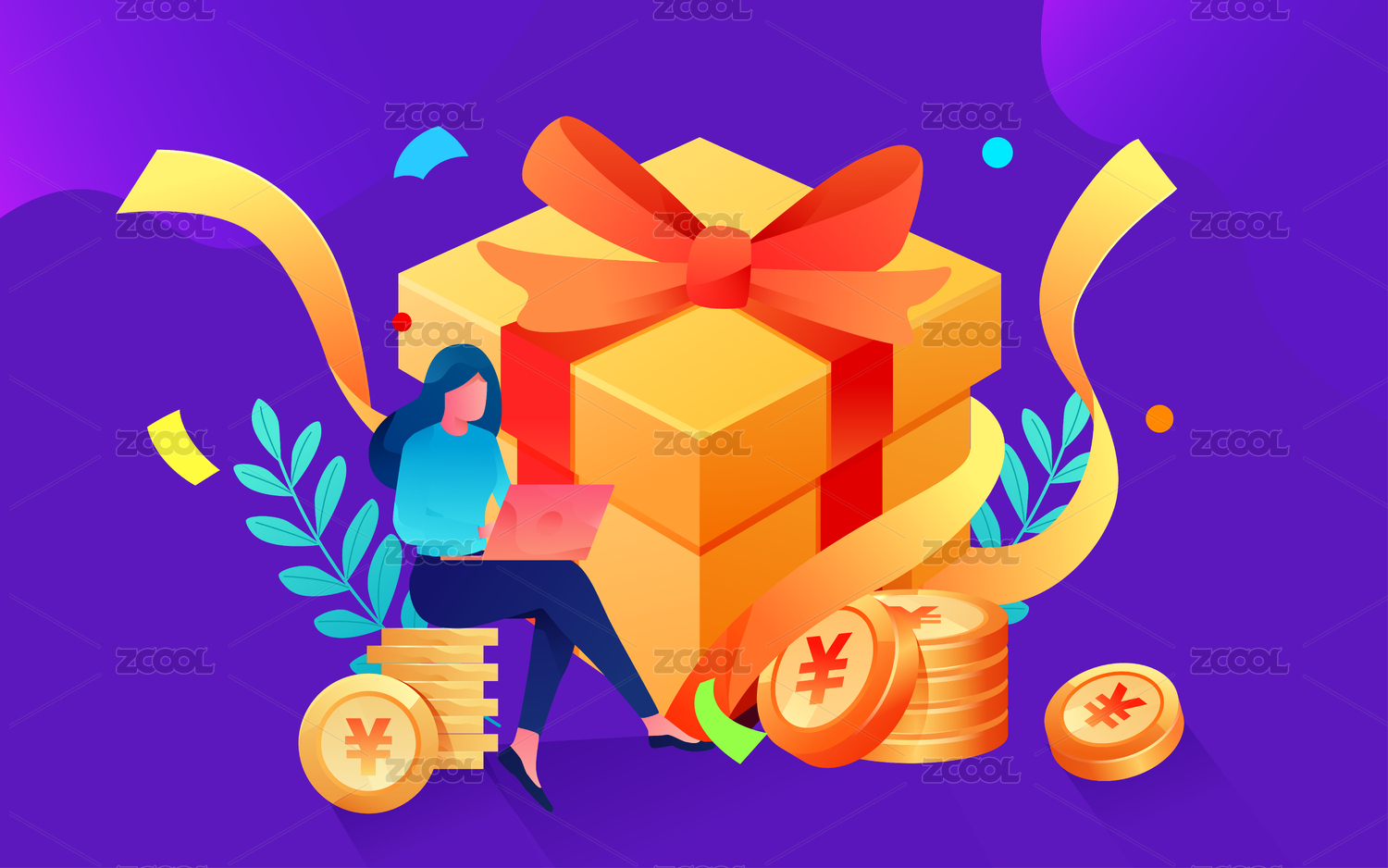 卡通电商购物节活动互联网金融礼盒矢量插画