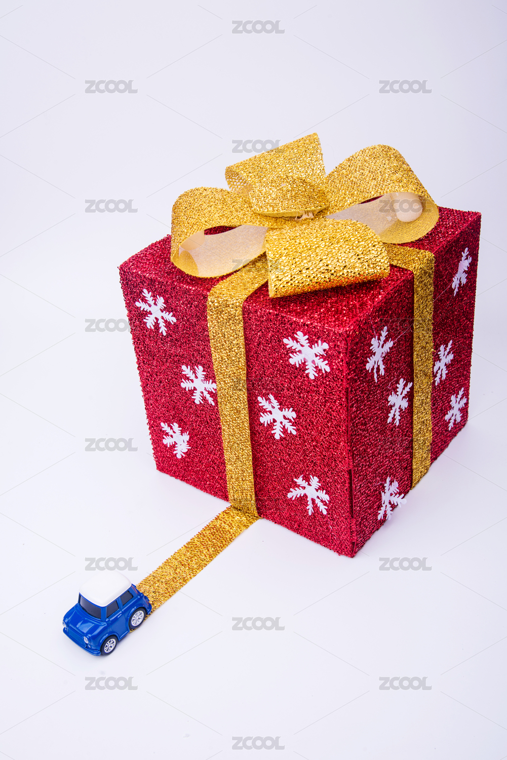 白色背景中的圣诞礼盒和小汽车模型