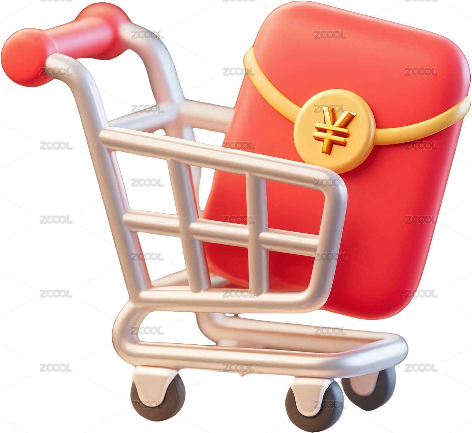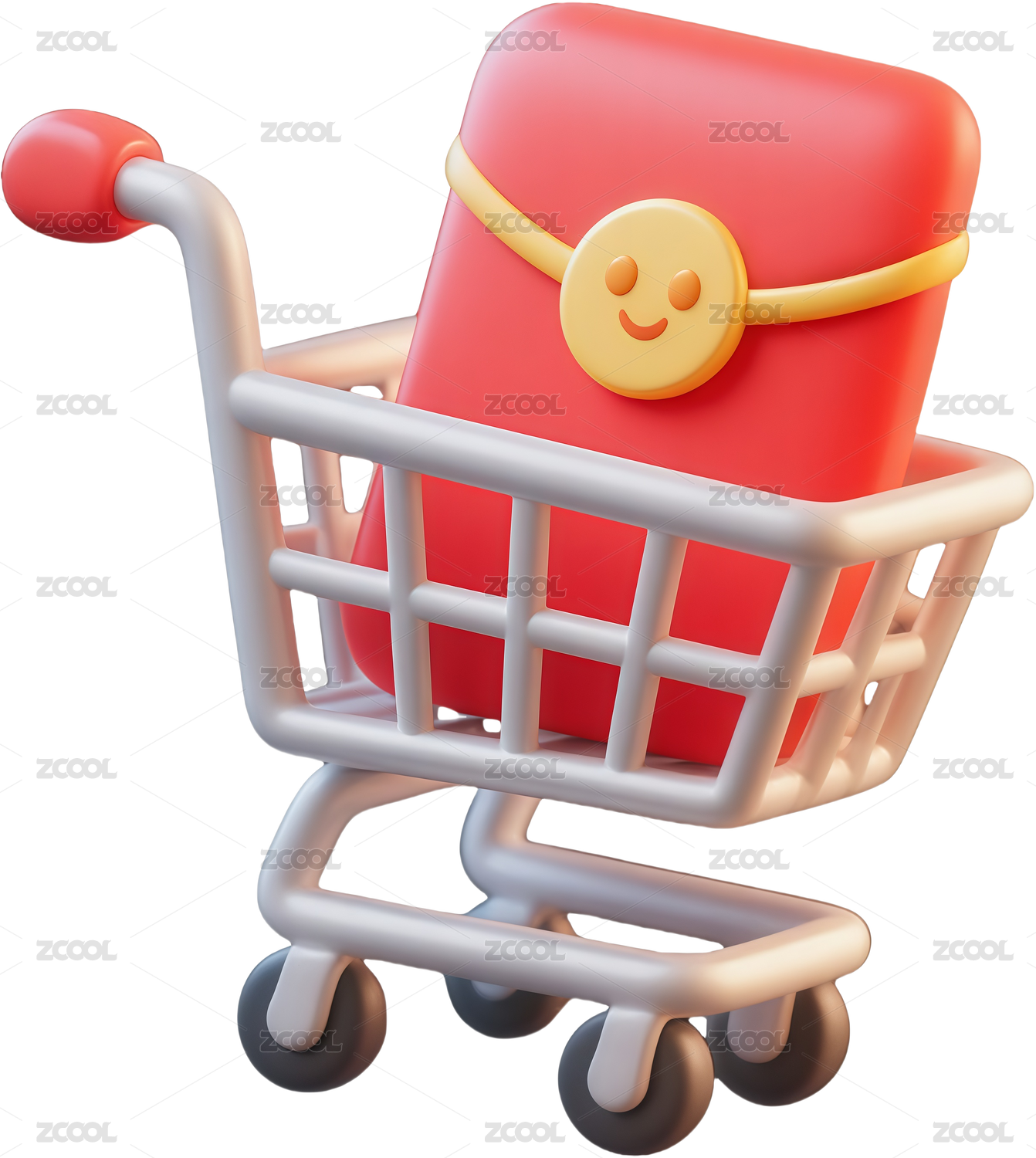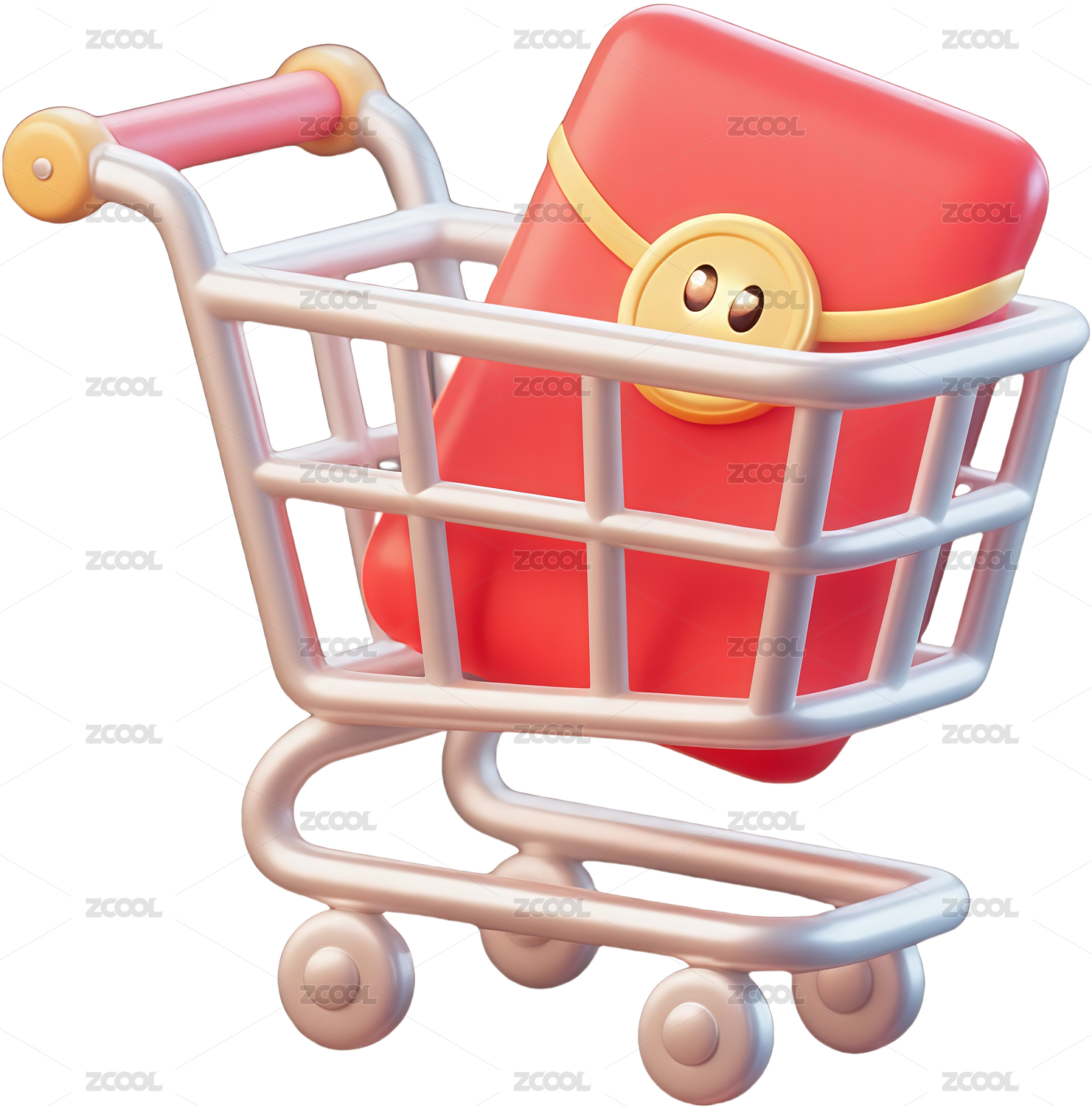 3D卡通风格购物车与礼盒场景插画