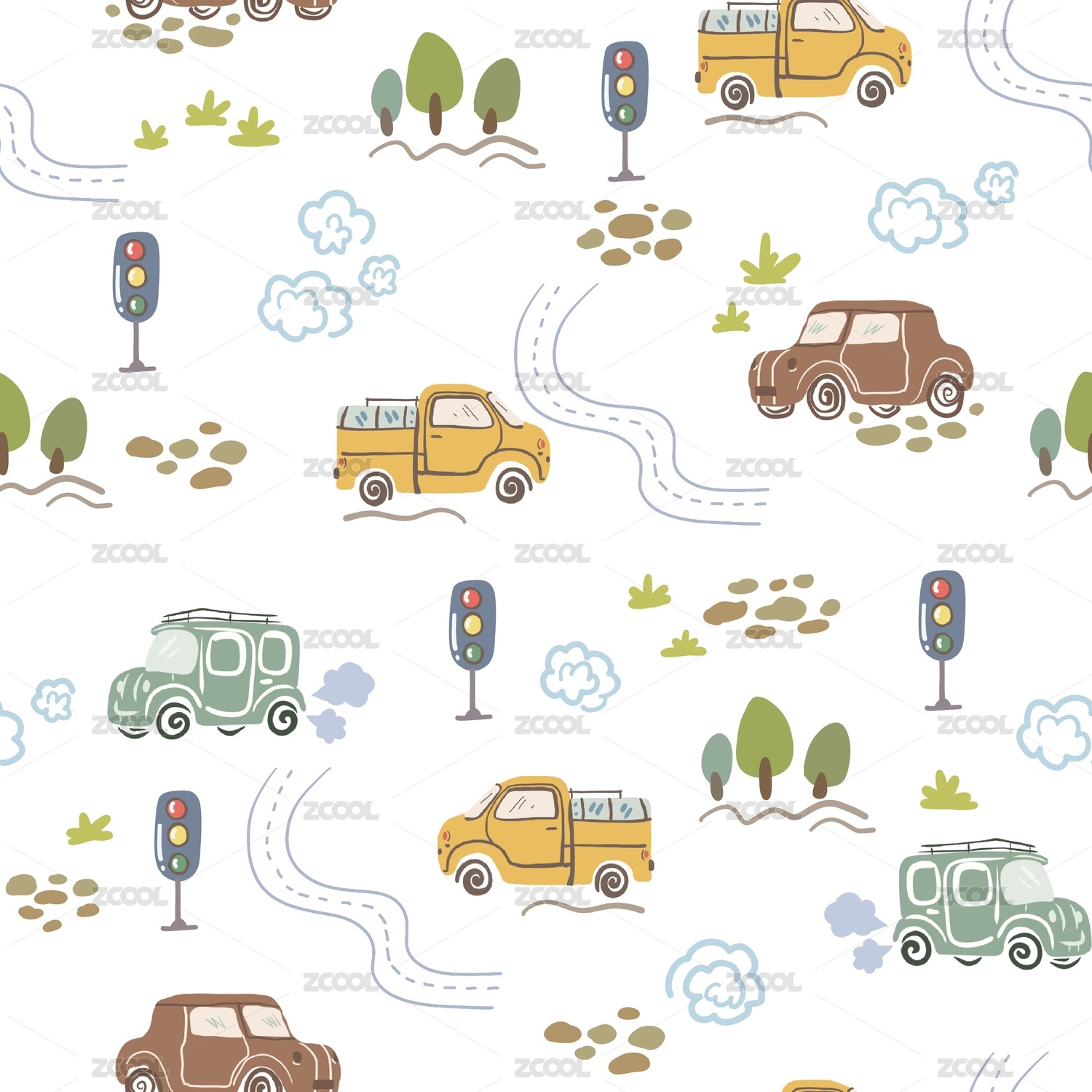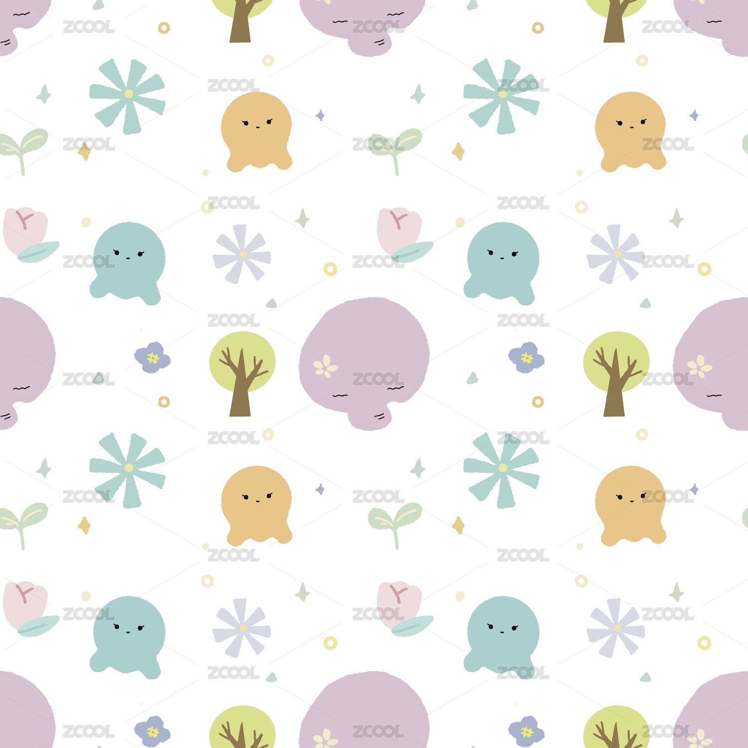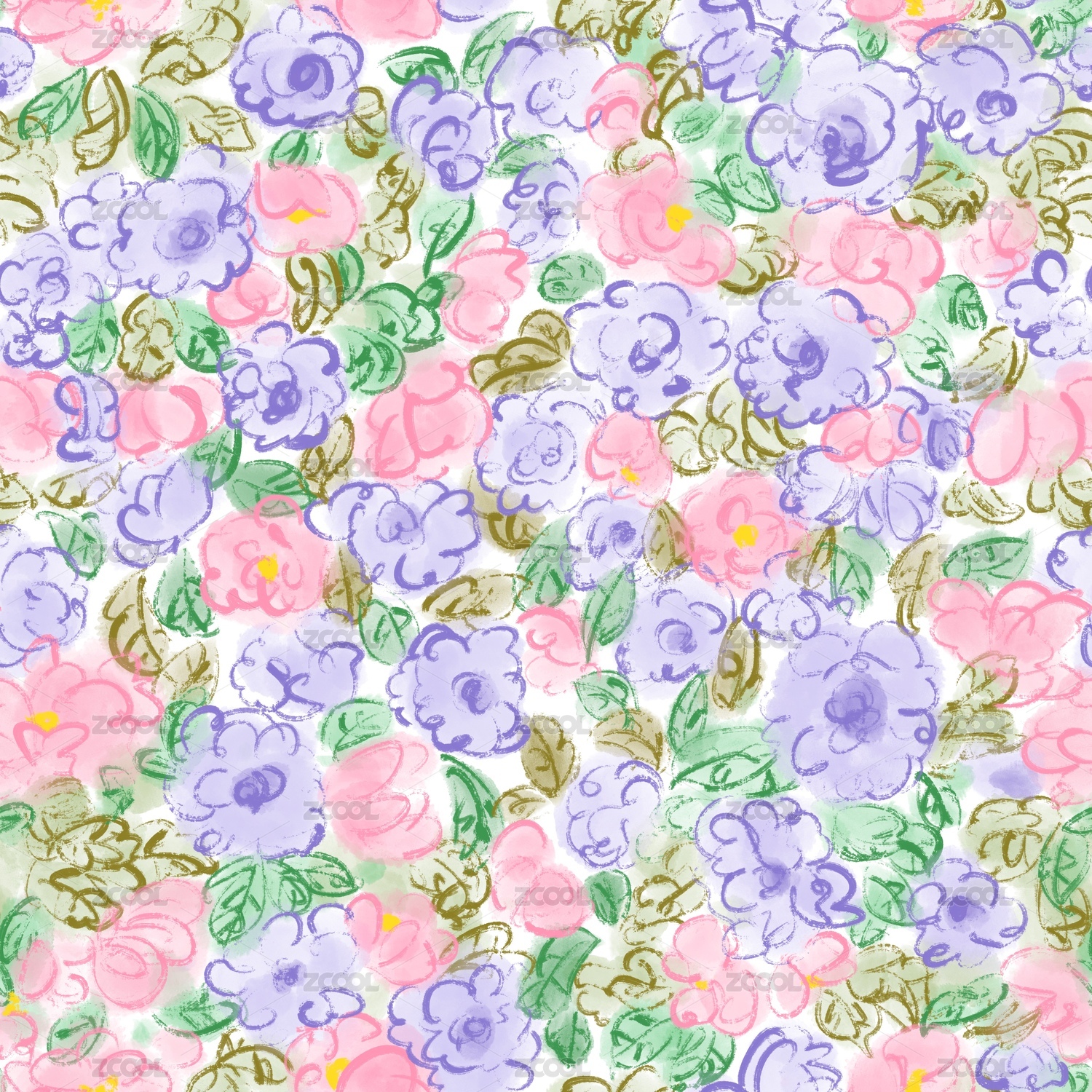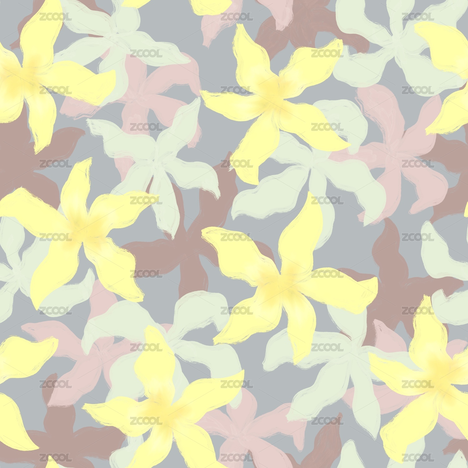 蓝色背景油画风格盛开桃花四方连续家纺图案