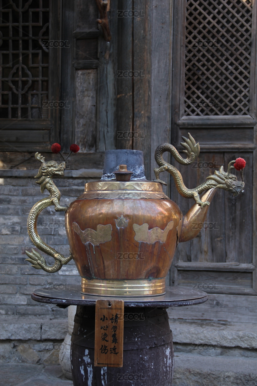 云南腾冲银杏村民居火炉上的烧水壶和炖汤锅