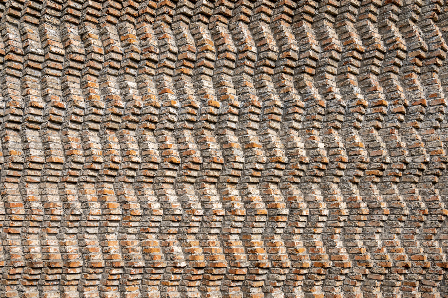 上海老建筑立体红砖墙面波浪形装饰纹理