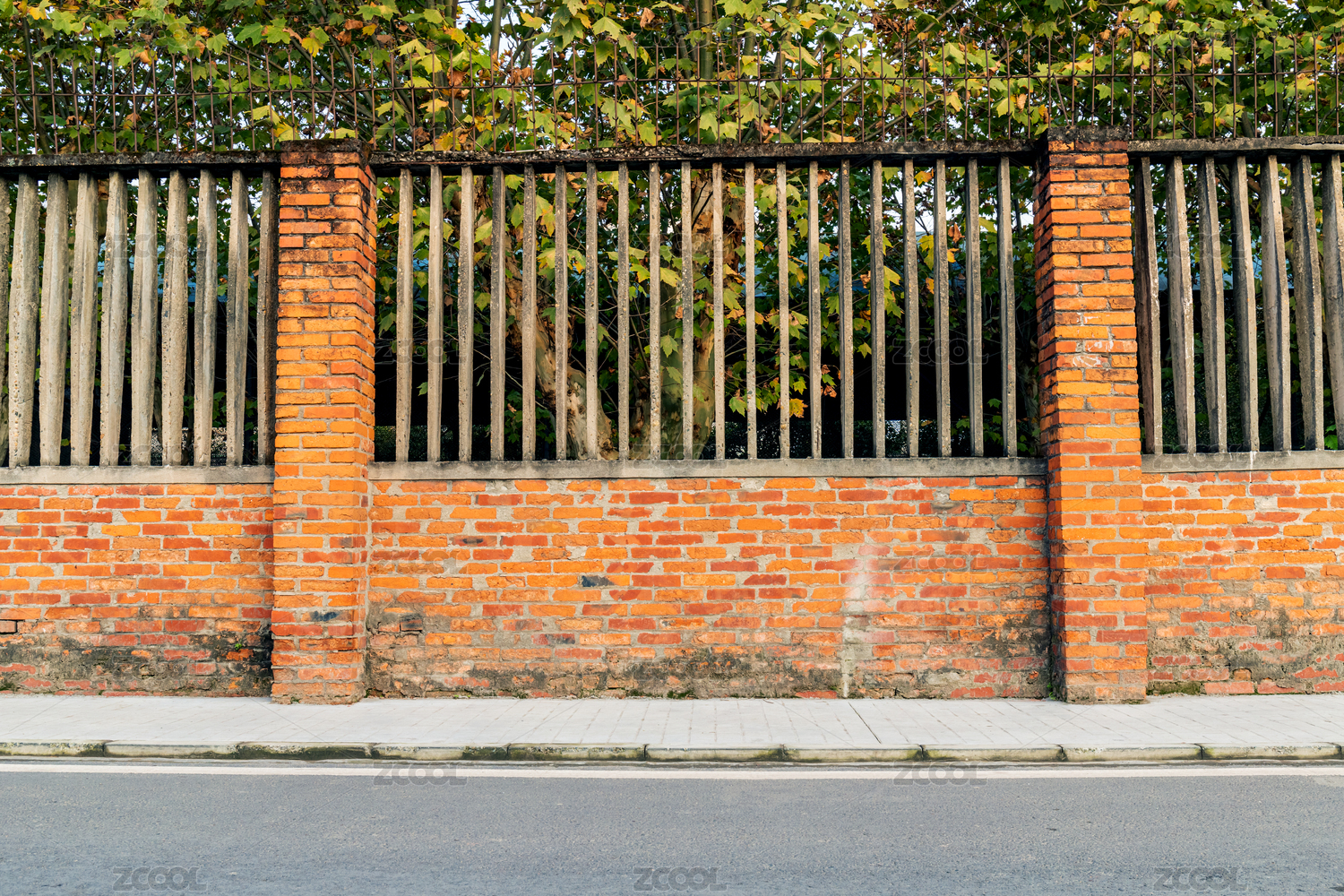 红色砖块砌成的护院围墙栅栏