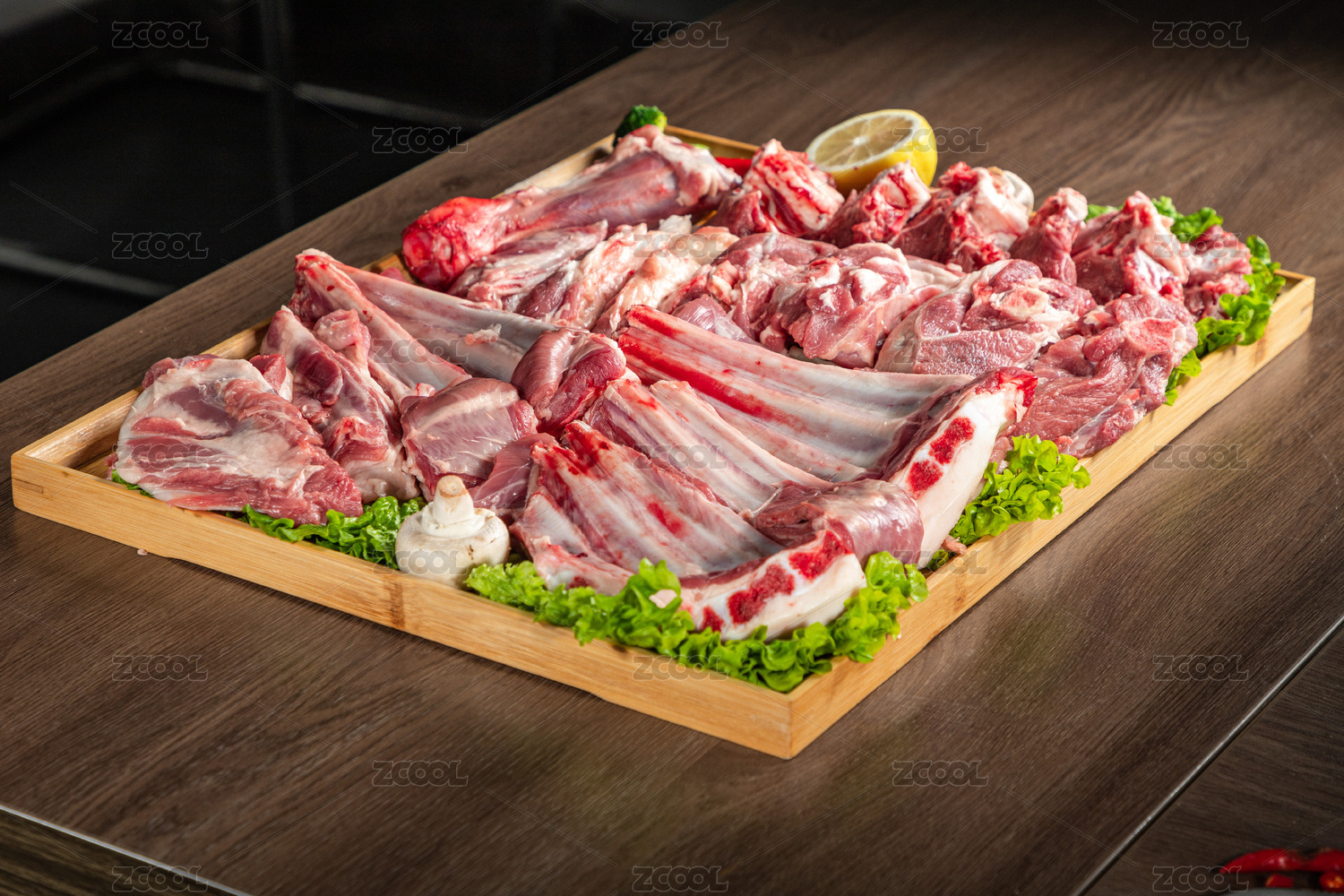 木质托盘里有一份羊肉手把肉