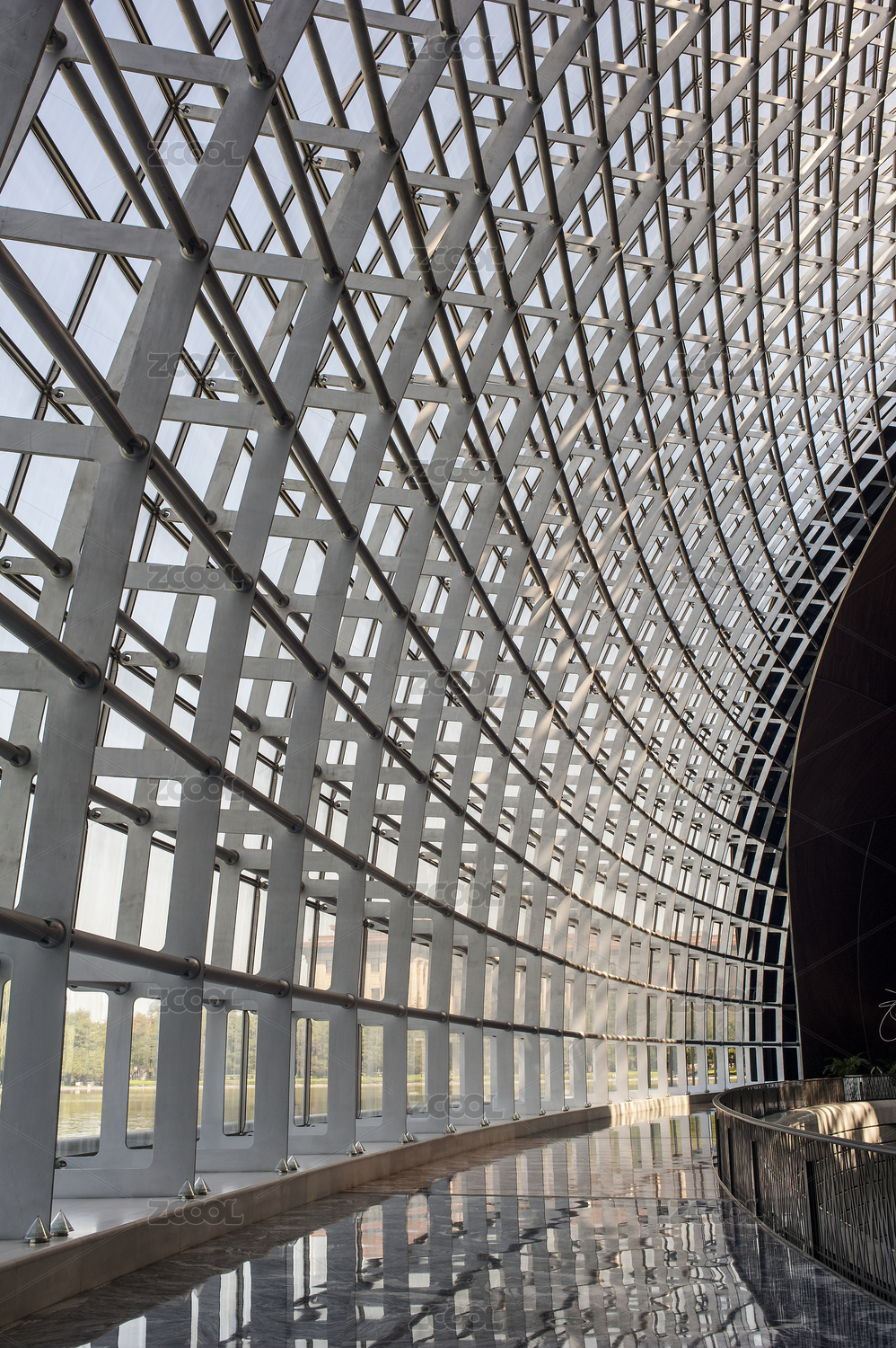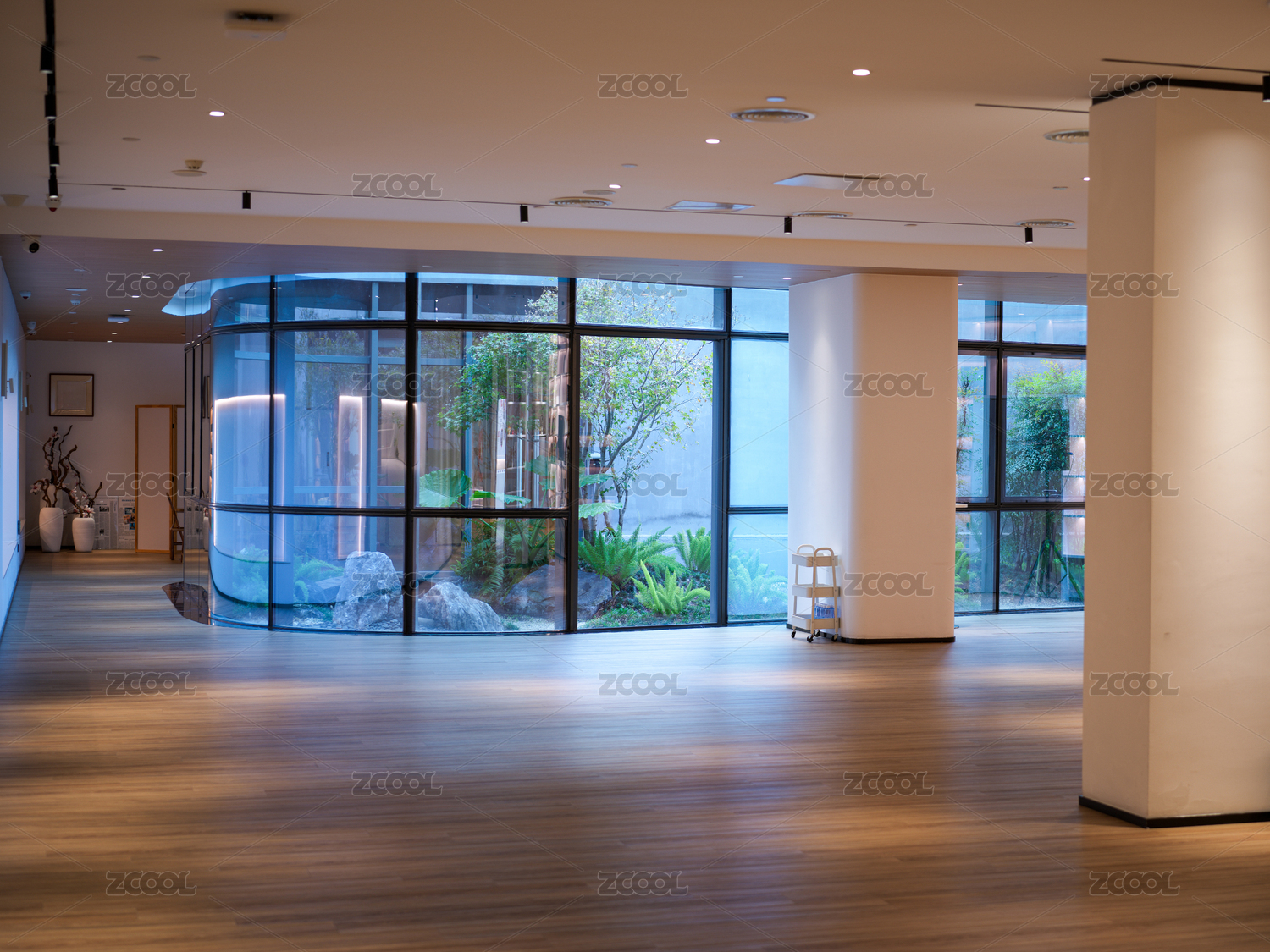 幽暗的现代极简商务办公大厅霓虹幕墙海报