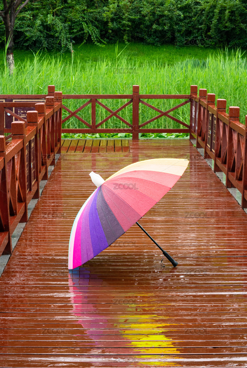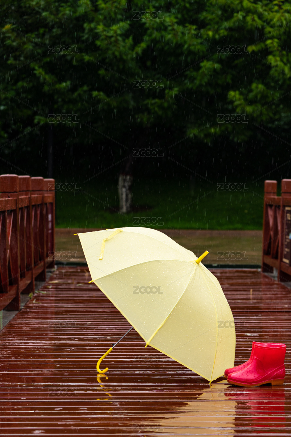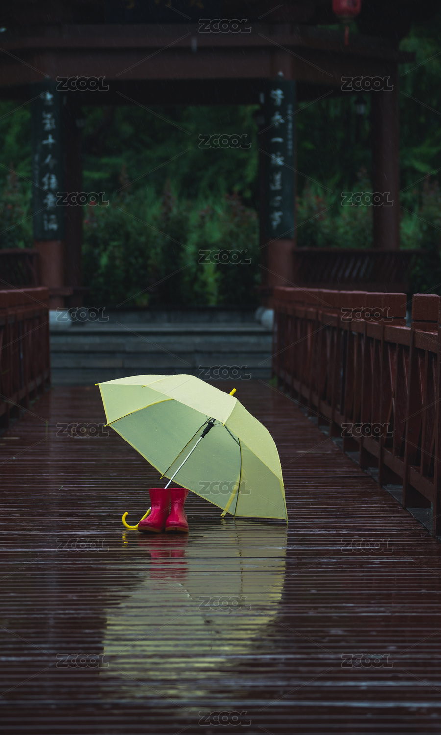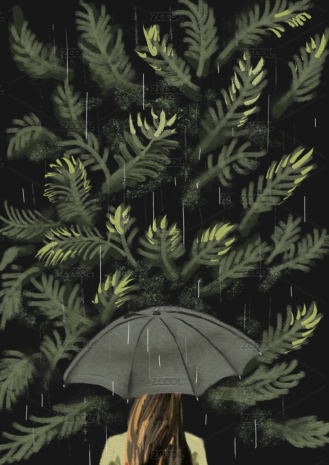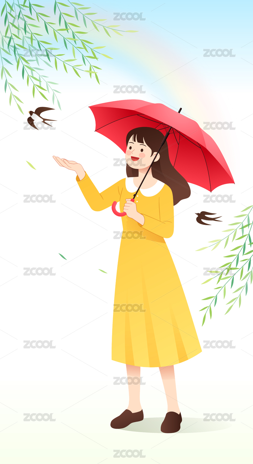 春天一个撑着雨伞的女孩和柳叶燕子等