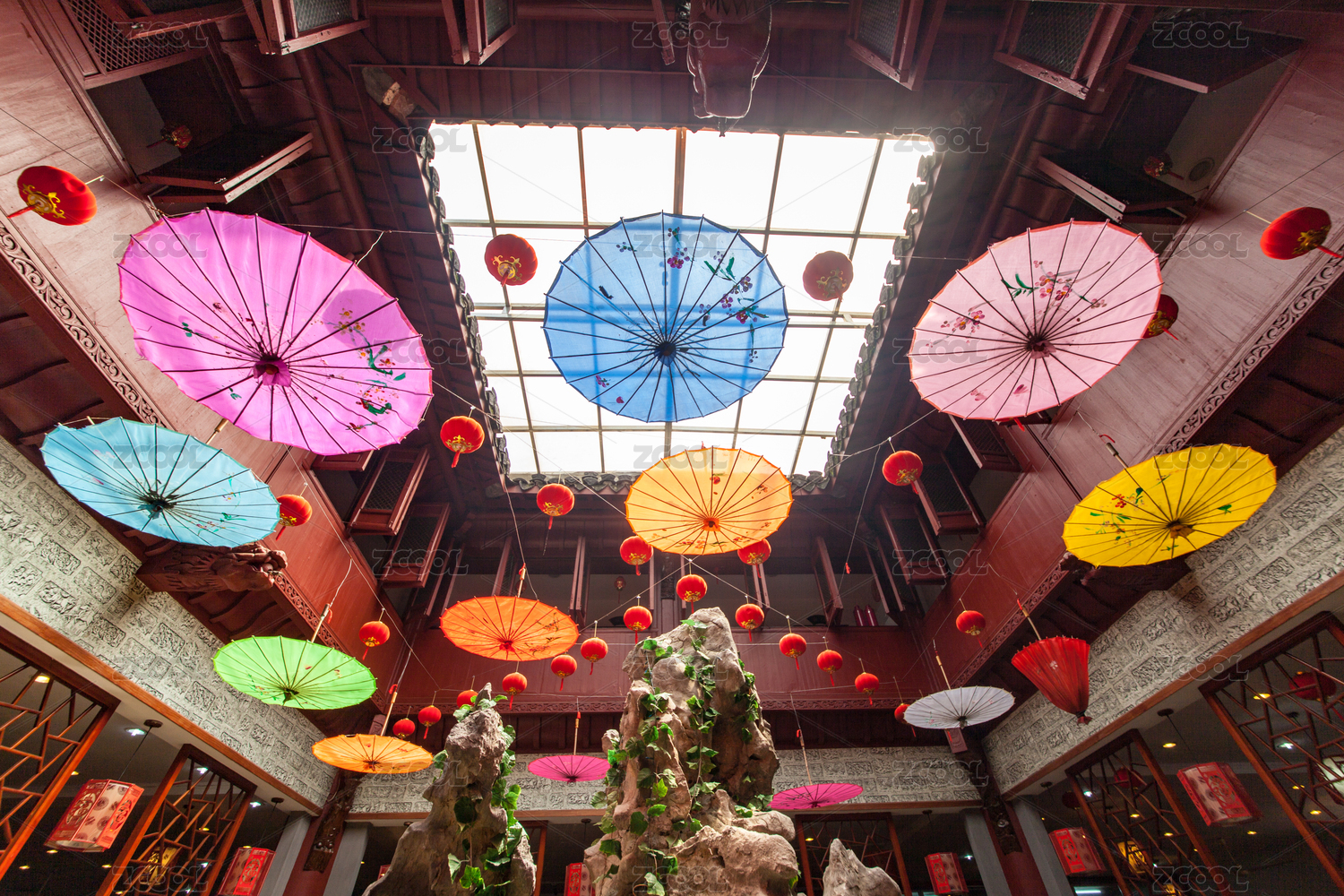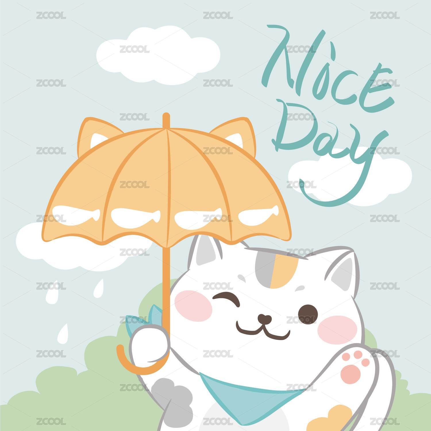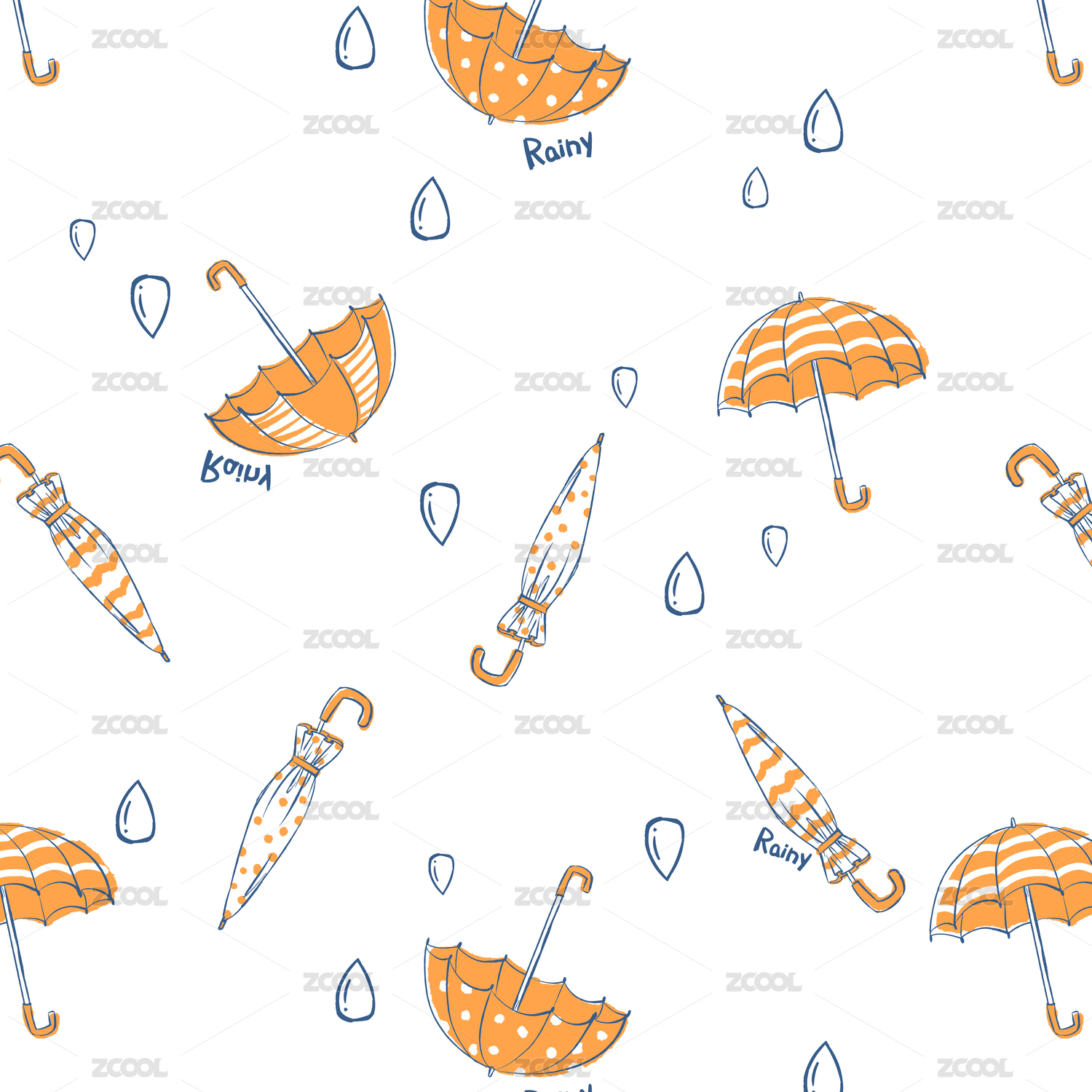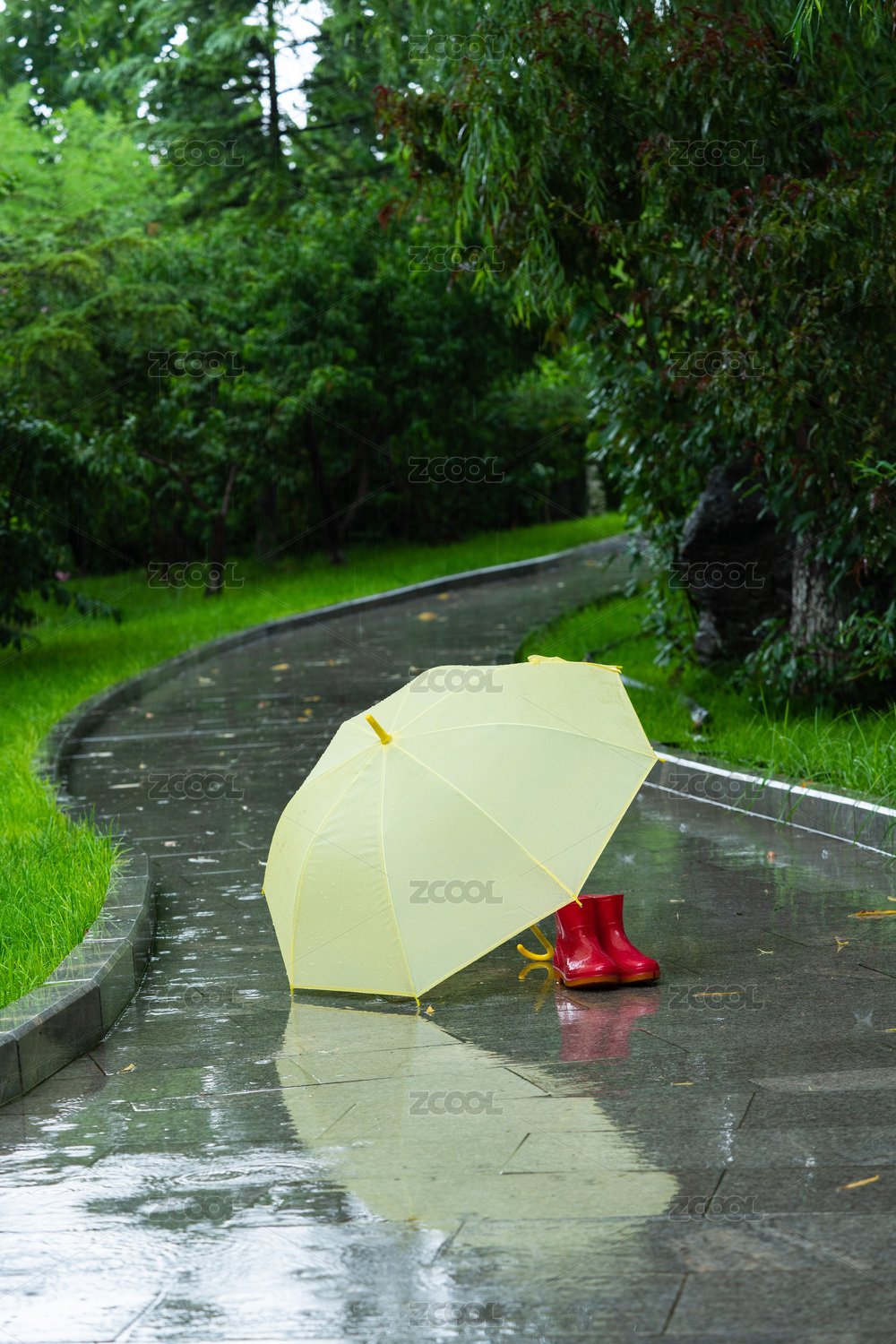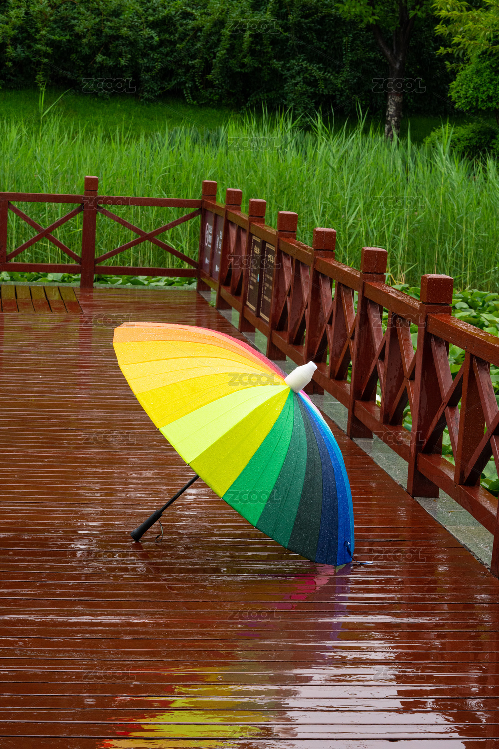 春天一个撑着雨伞的女孩和柳叶燕子等