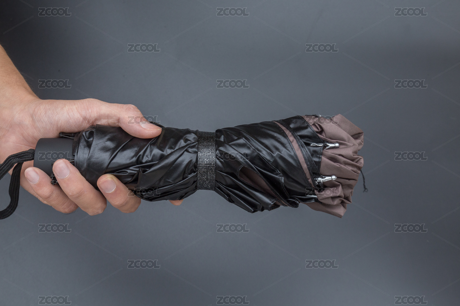 绿背景前一只手拿着雨伞为另一只手中拿着的钱袋子符号遮风挡雨