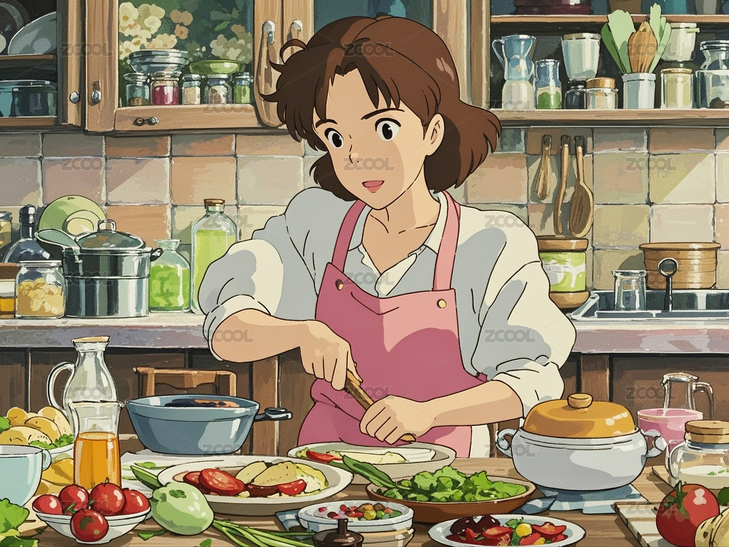 厨房里做美食的妈妈