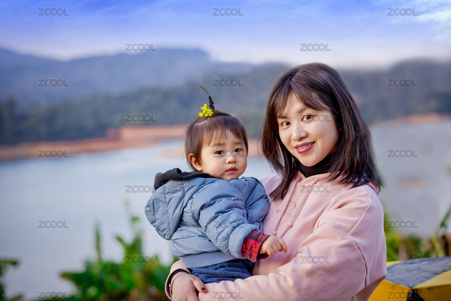 年轻妈妈抱着宝贝孩子