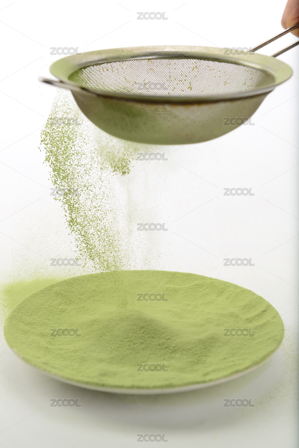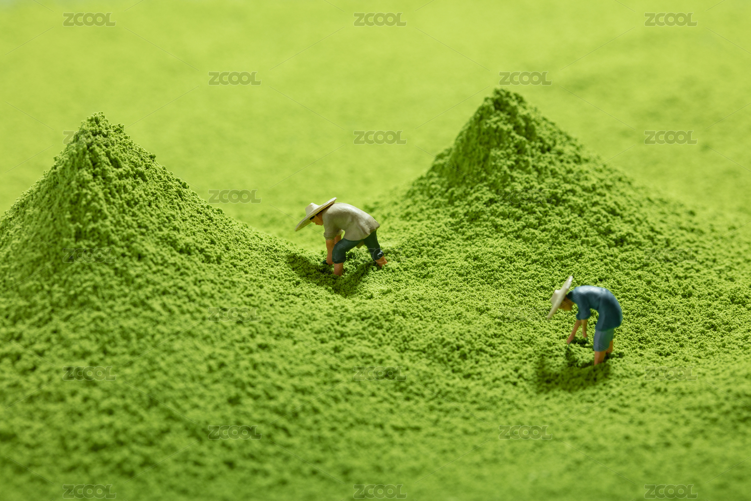 微缩创意抹茶粉特写与茶农