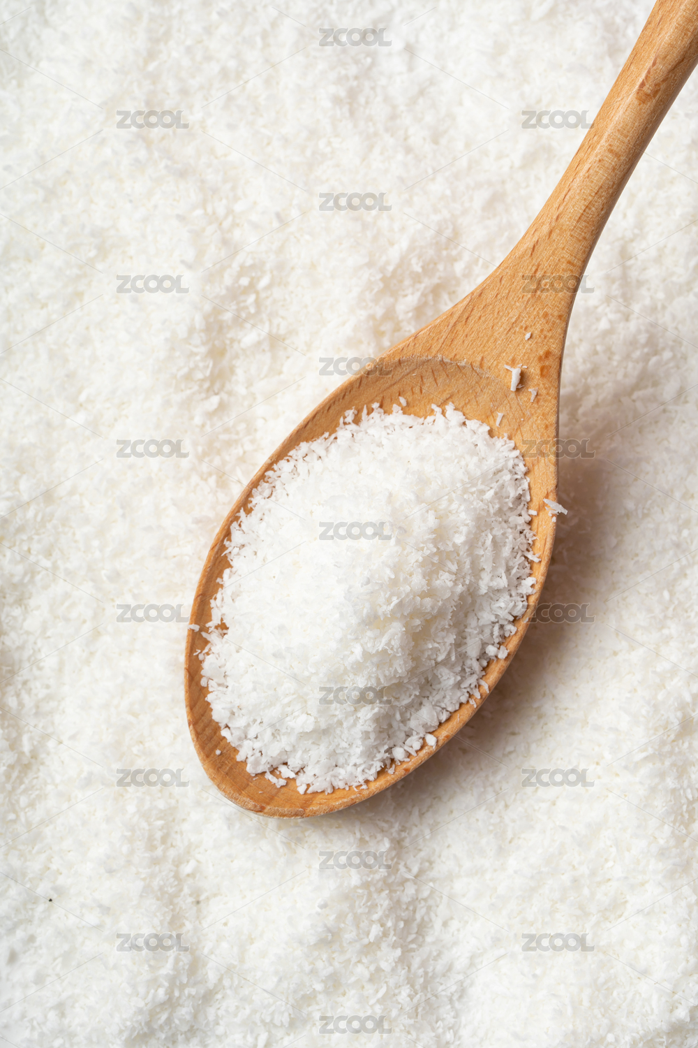 木勺子上的椰蓉特写