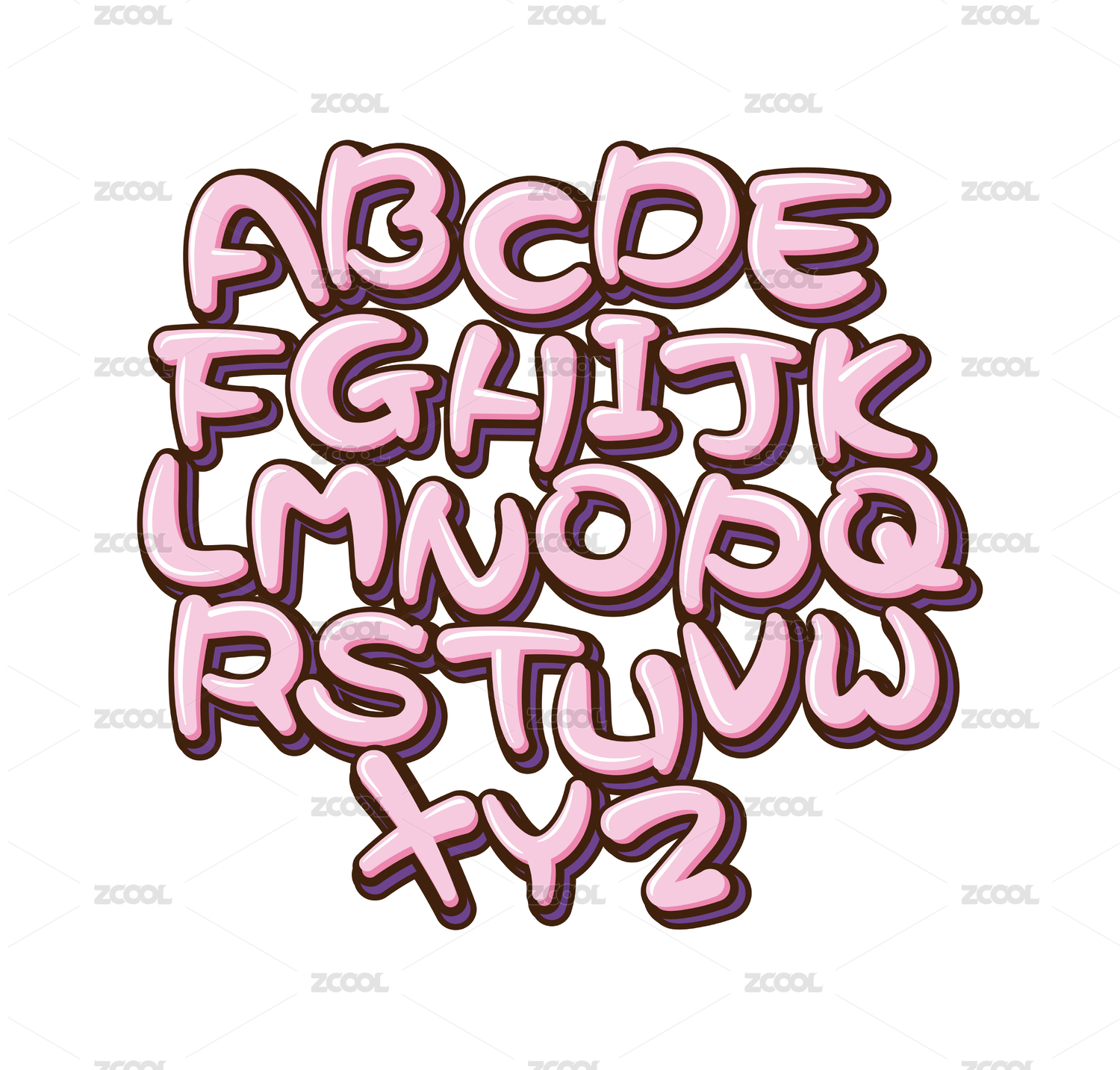 可爱泡泡涂鸦的26个英文字母