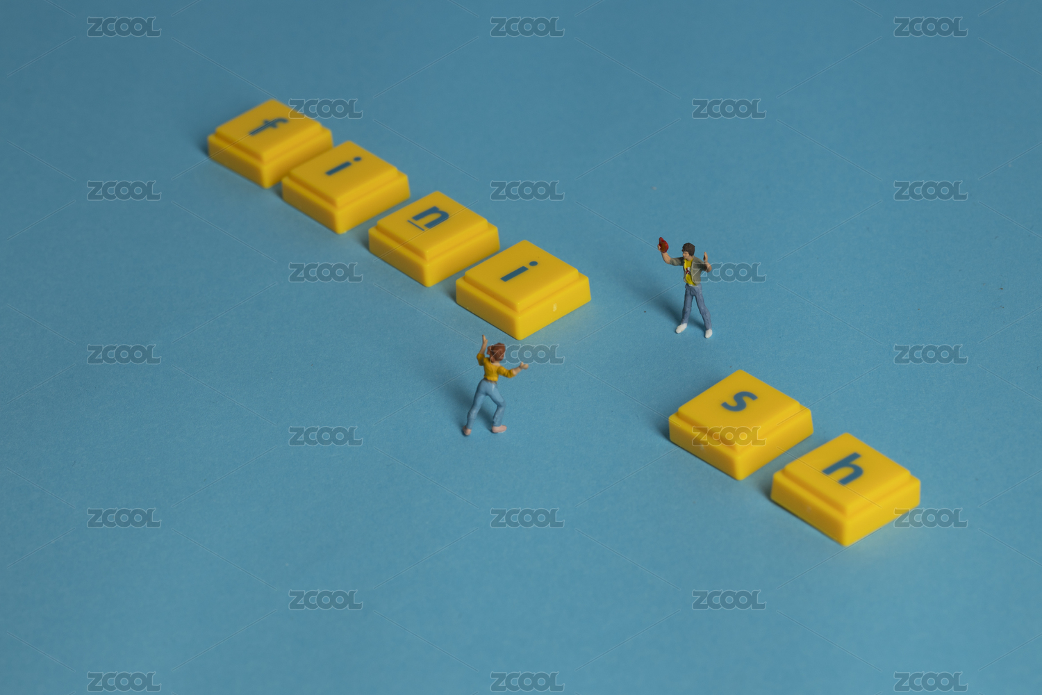 蓝色卡纸工作的人和黄色英文字母