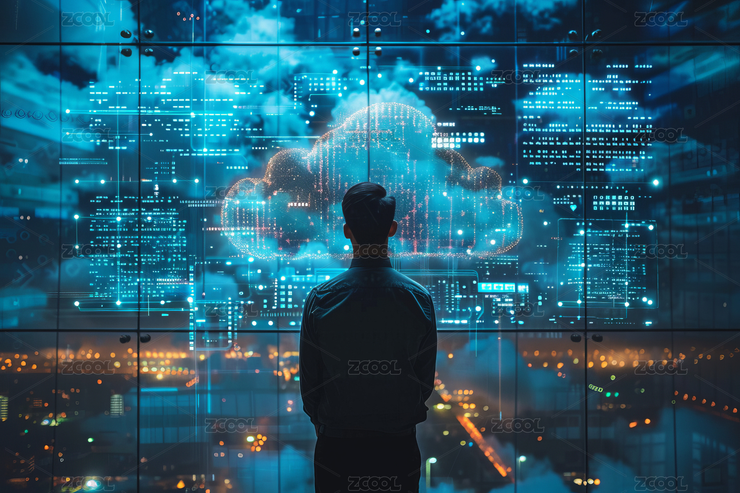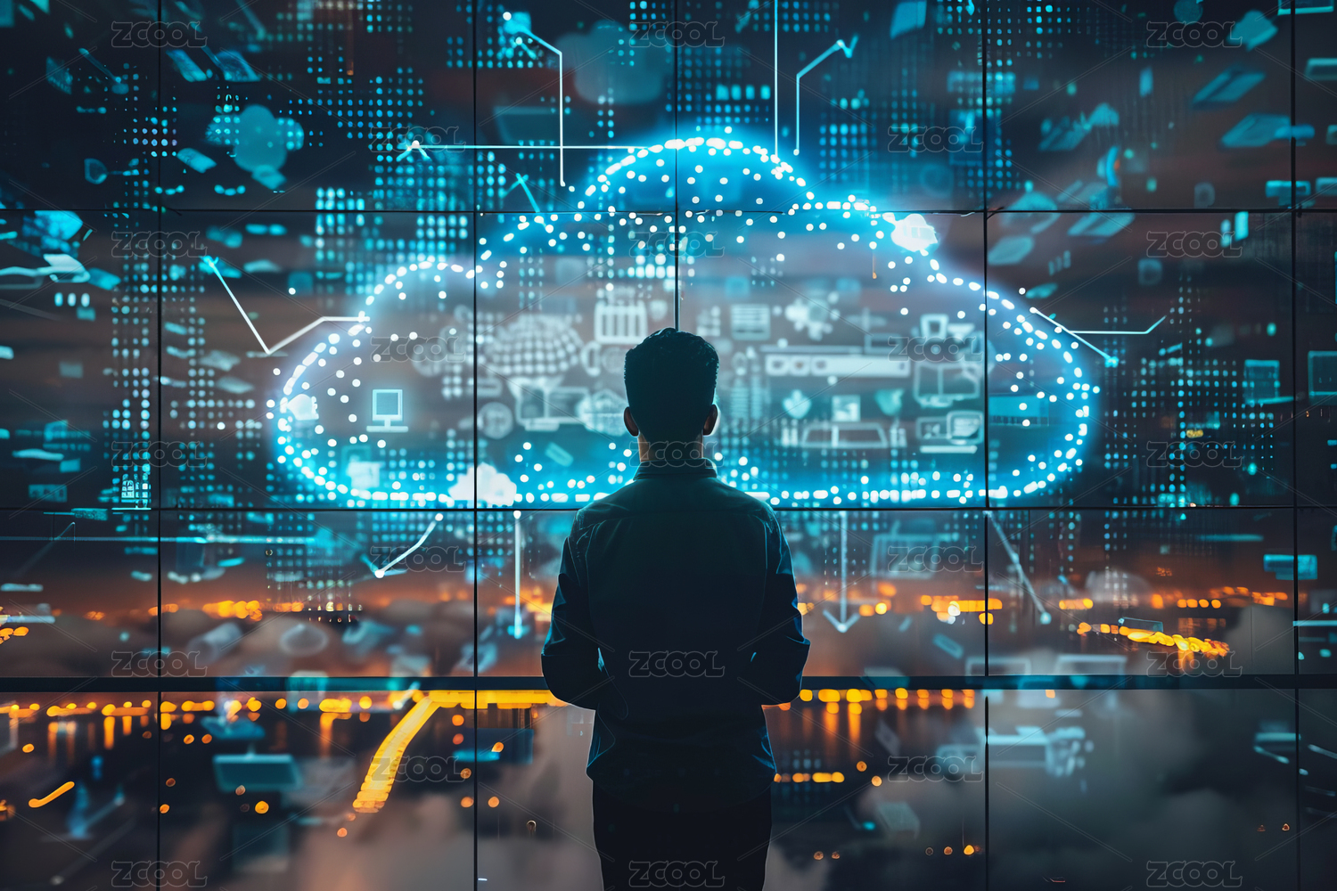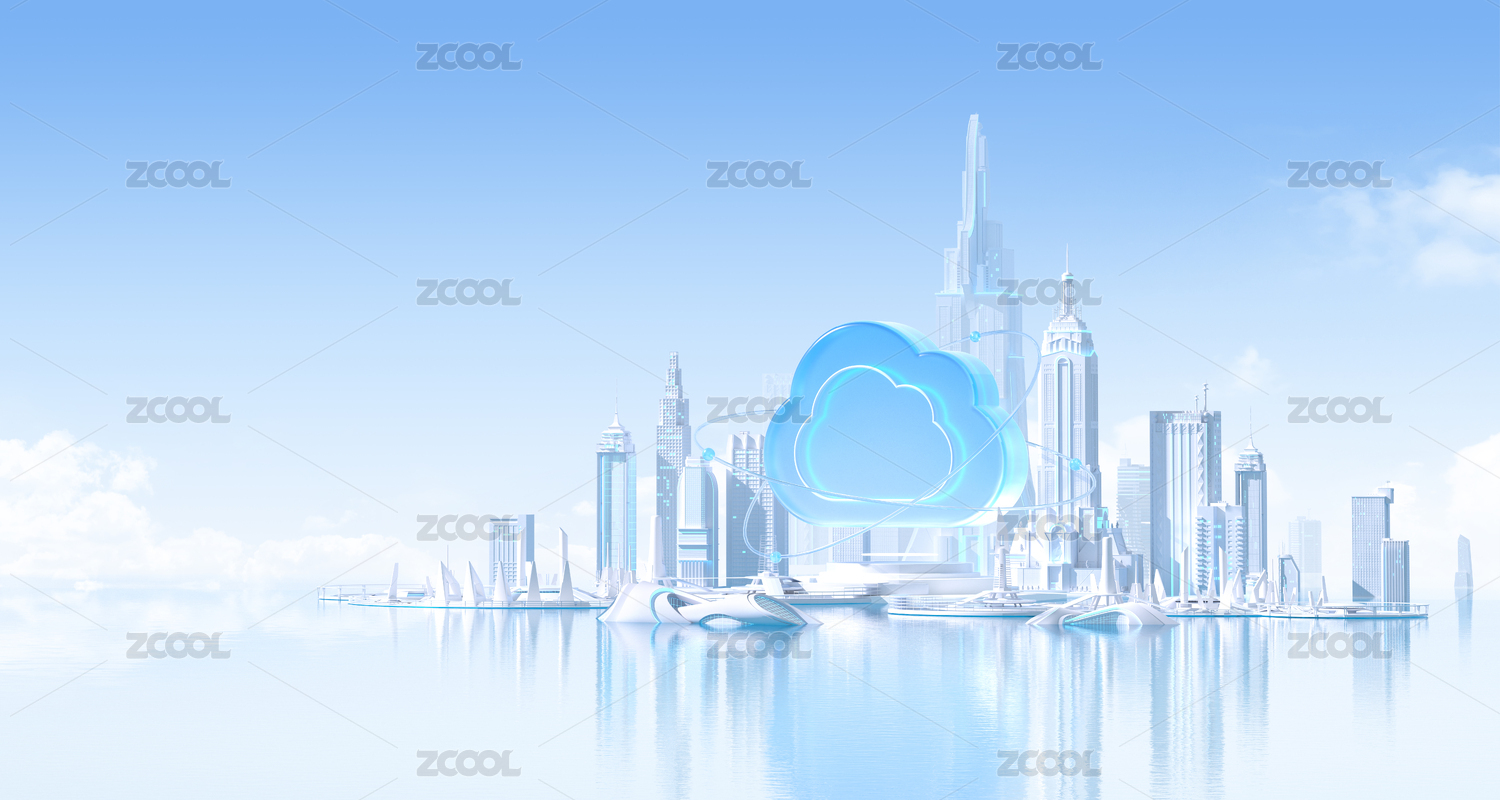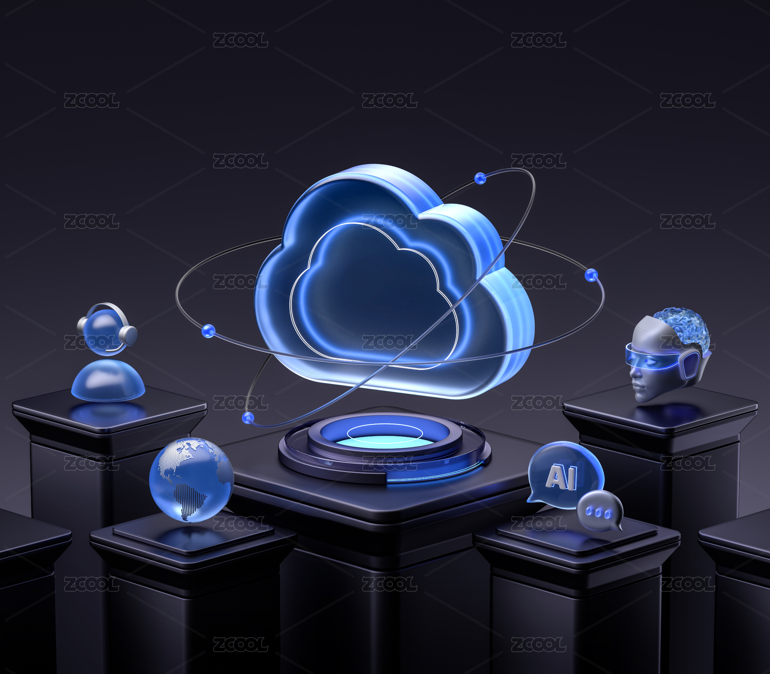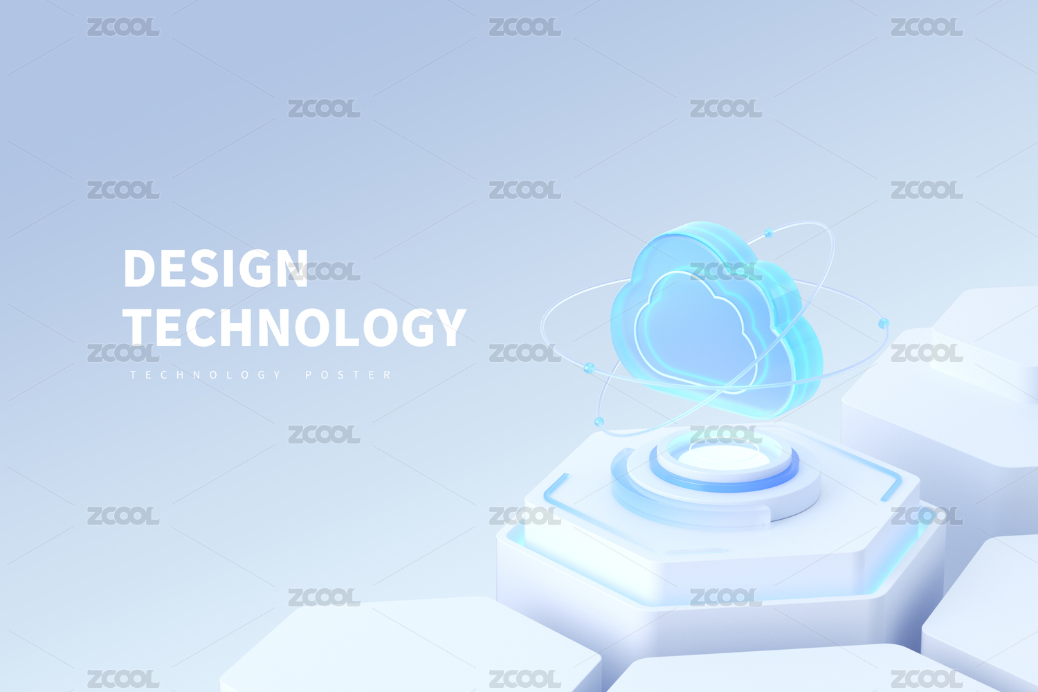 科技蓝云计算大数据概念智能弧线旋绕海报