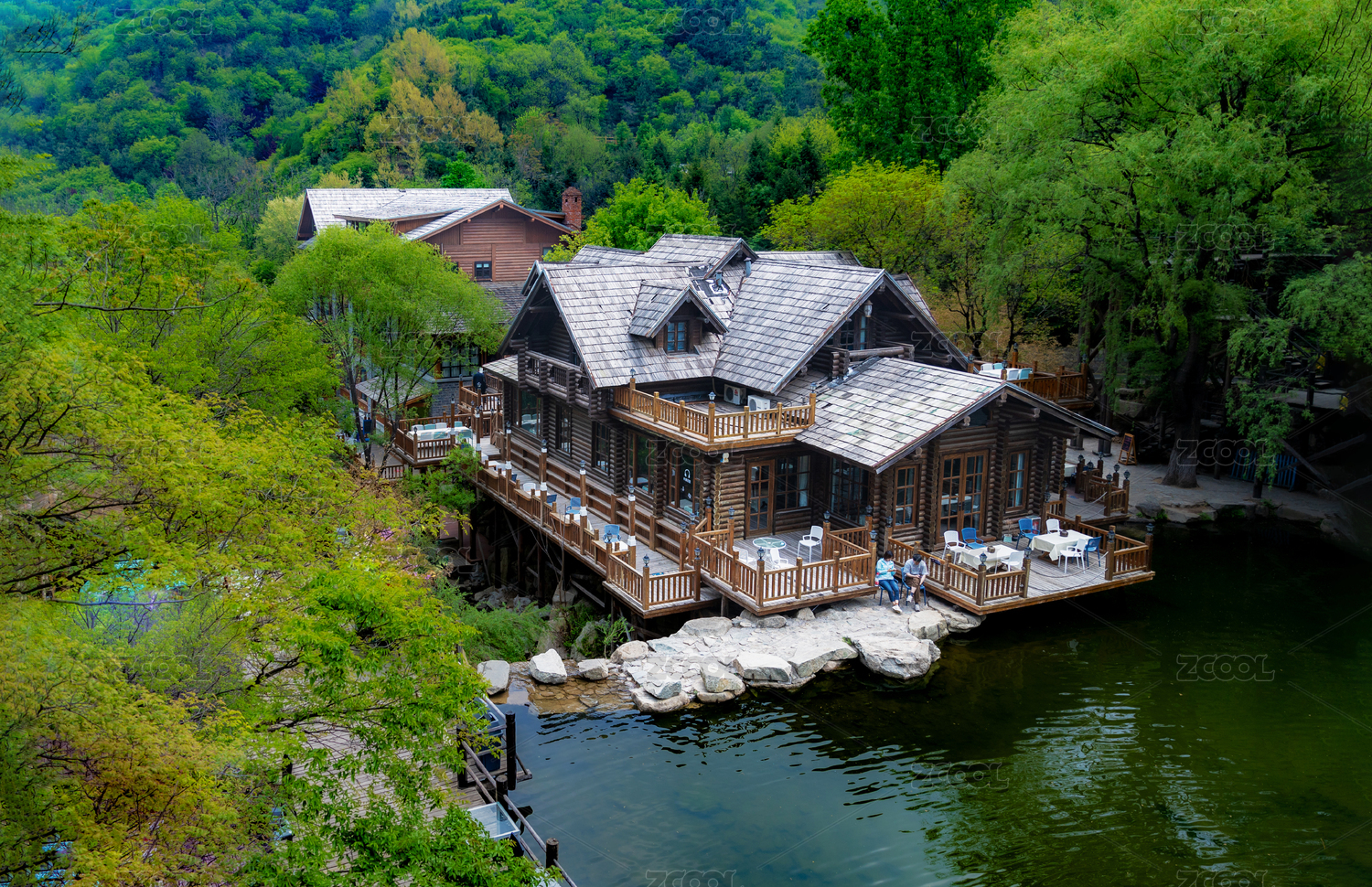 九如山湖畔木屋的静谧自然景致