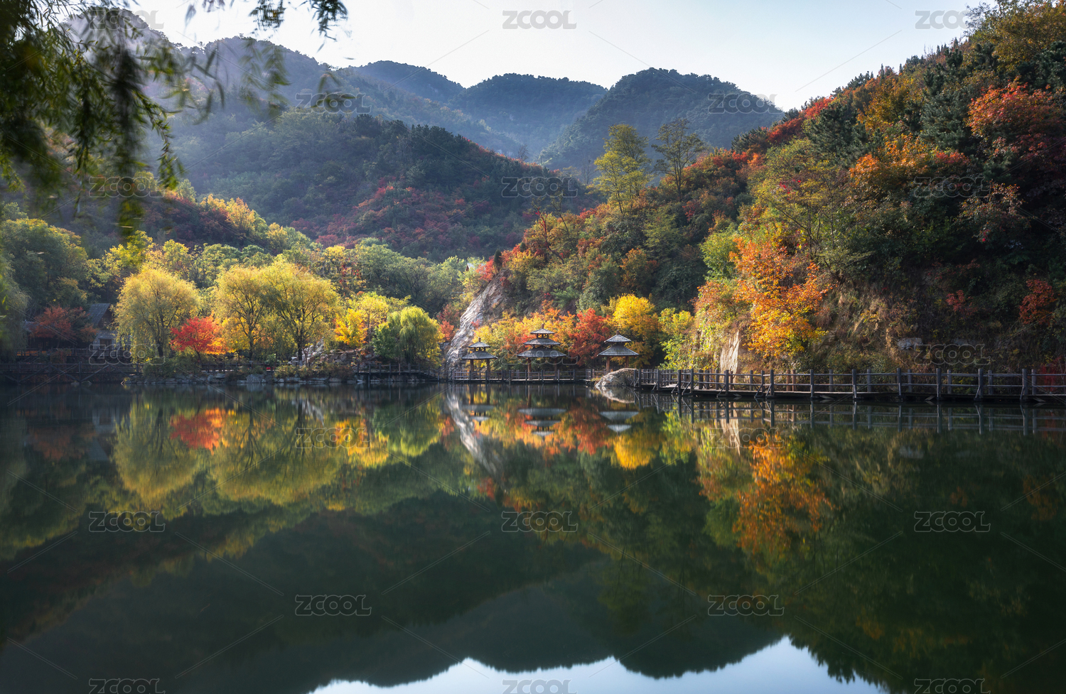 中国山东济南九如山深秋红叶