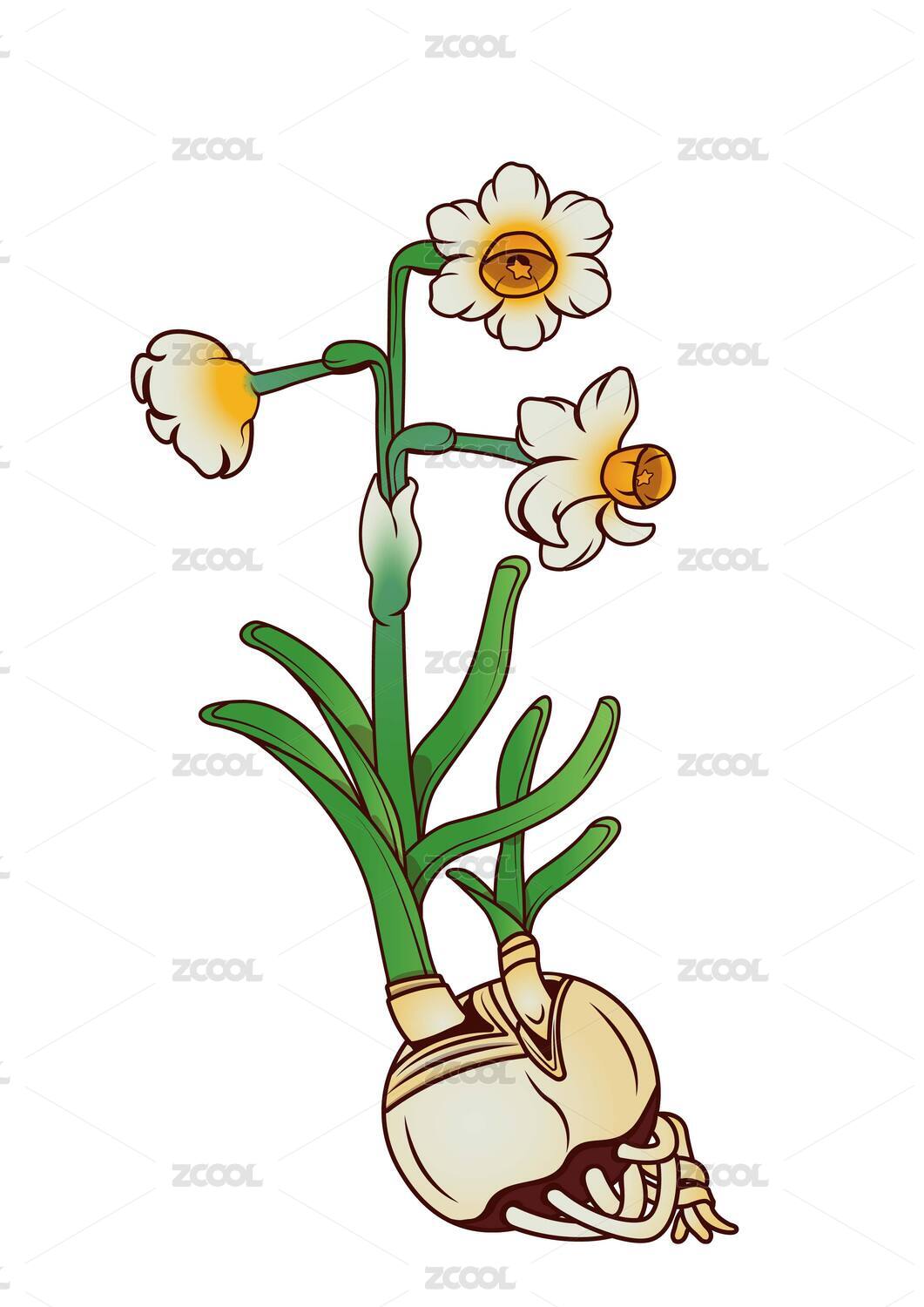 水仙花-手绘矢量传统花卉