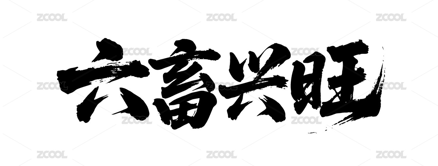 中国风书法汉字字体设计六畜兴旺