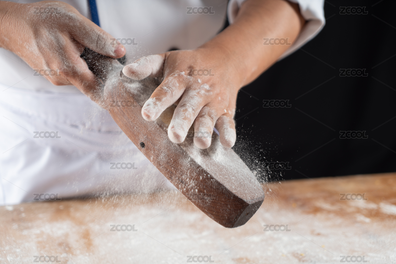 面食制作案板上一双正在揉面的手