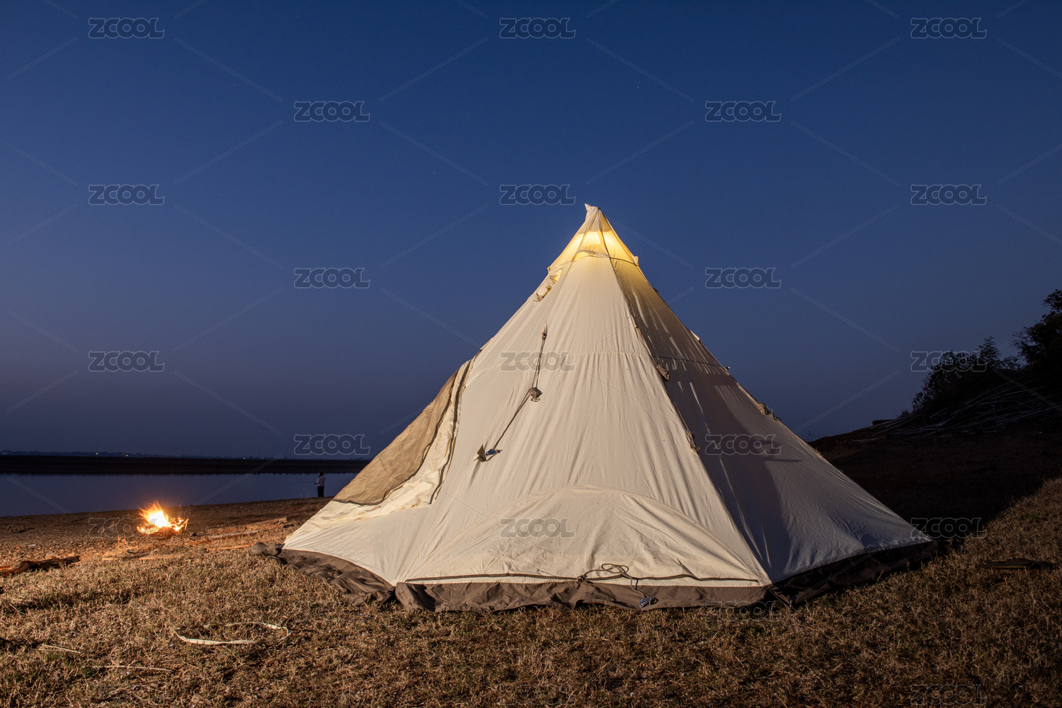 夜晚在美丽的星空下,年轻的情侣们在露营中围着篝火喝茶看书休息,旁边是绿色的帐篷,夜空中布满了星星和银河。背景是白雪覆盖的群山