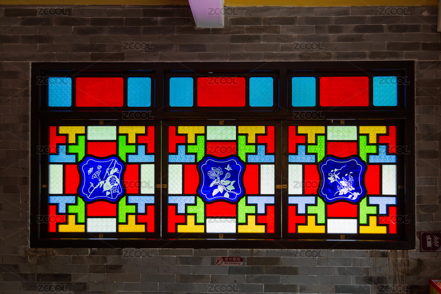 中国广东省佛山祖庙古建筑红围墙上的花卉浮雕陶瓷砖