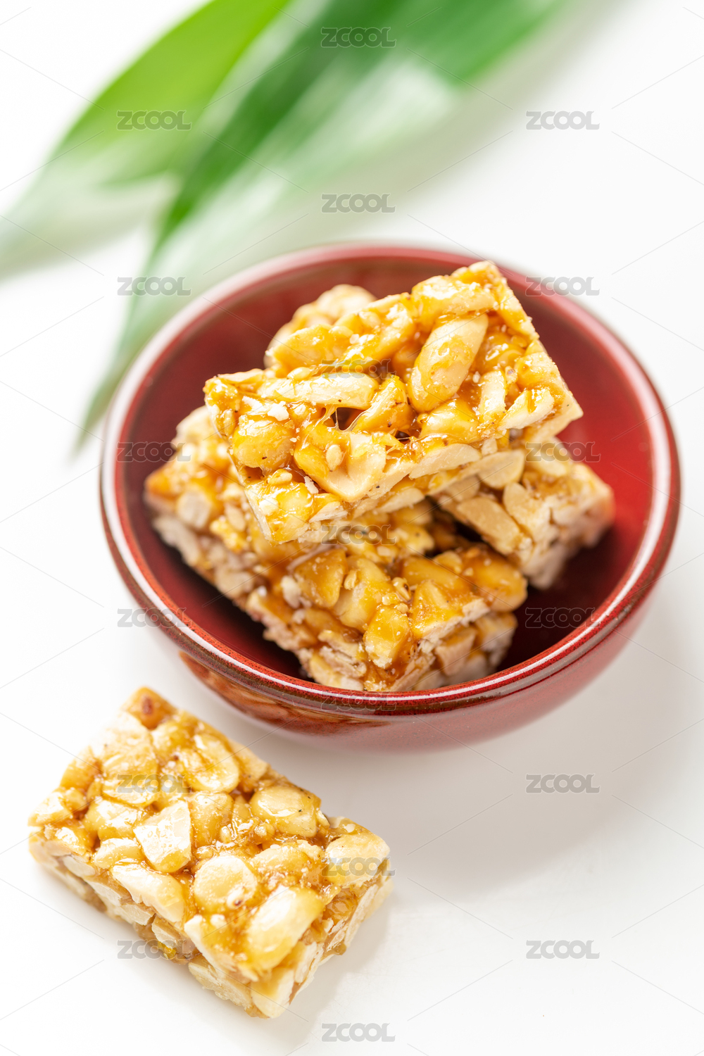 传统小吃花生糖特写白色背景