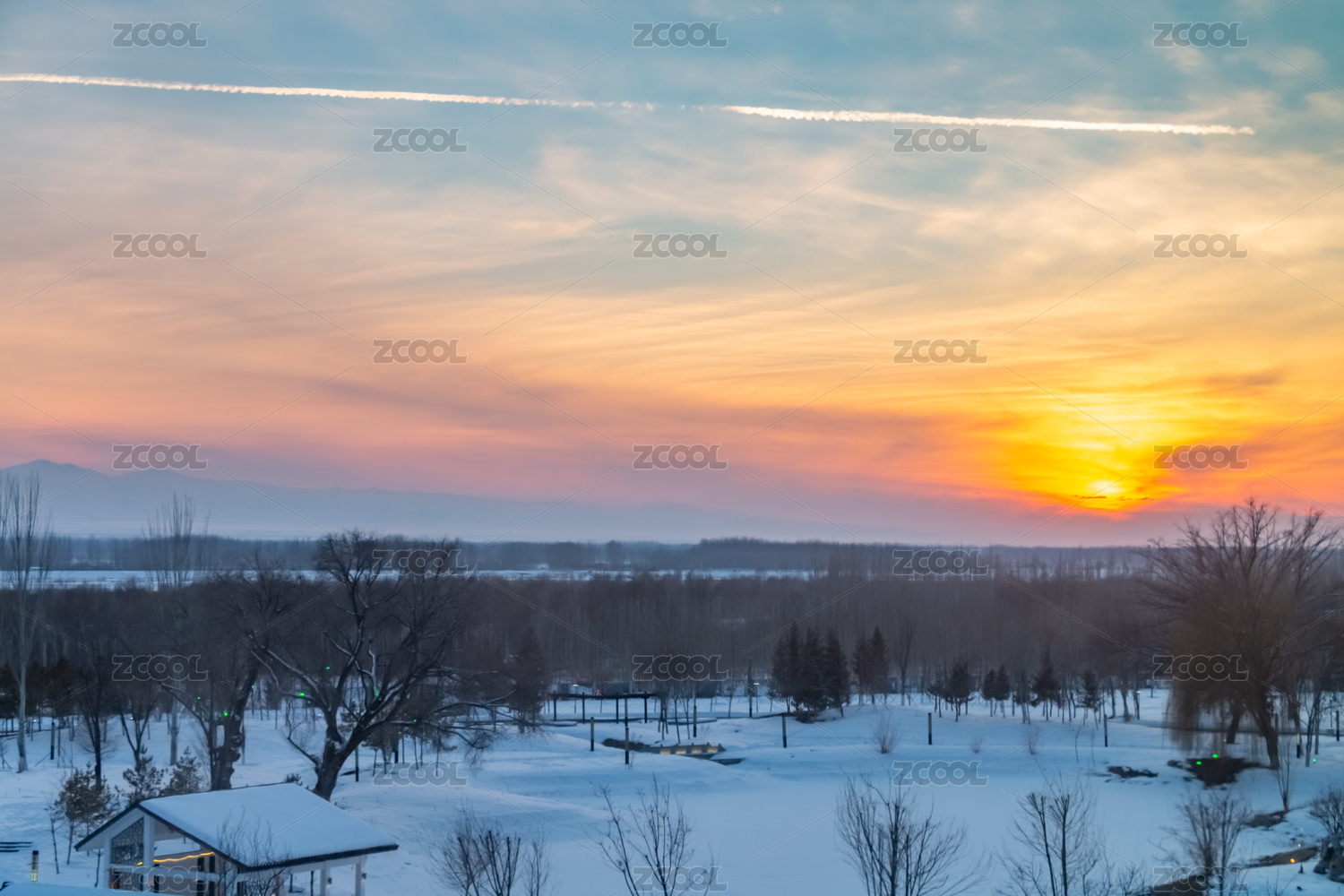新疆伊犁伊宁市伊犁河大桥落日风光