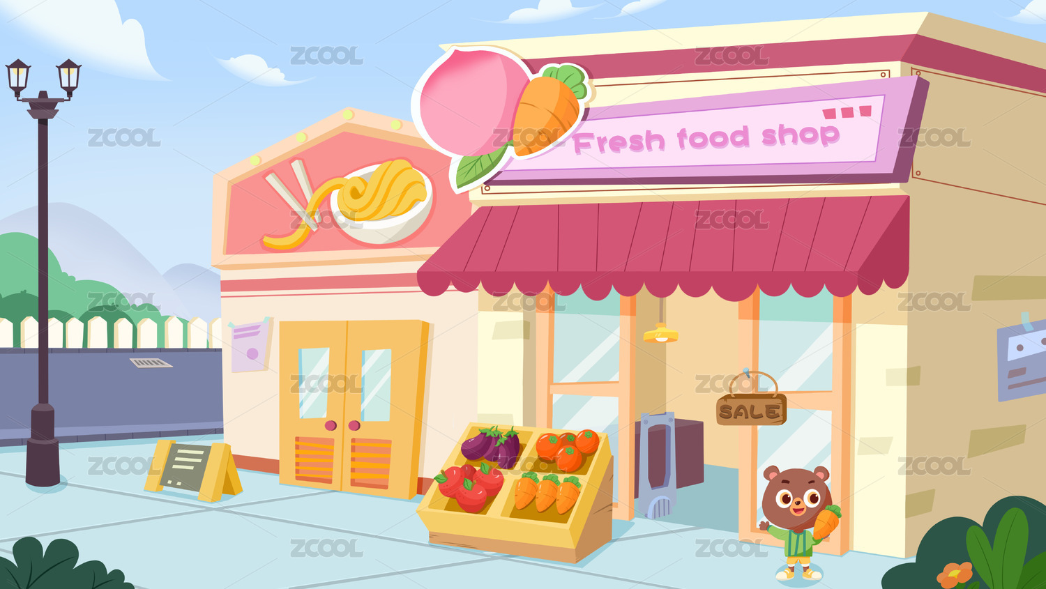 生鲜店叫卖的小熊 卡通