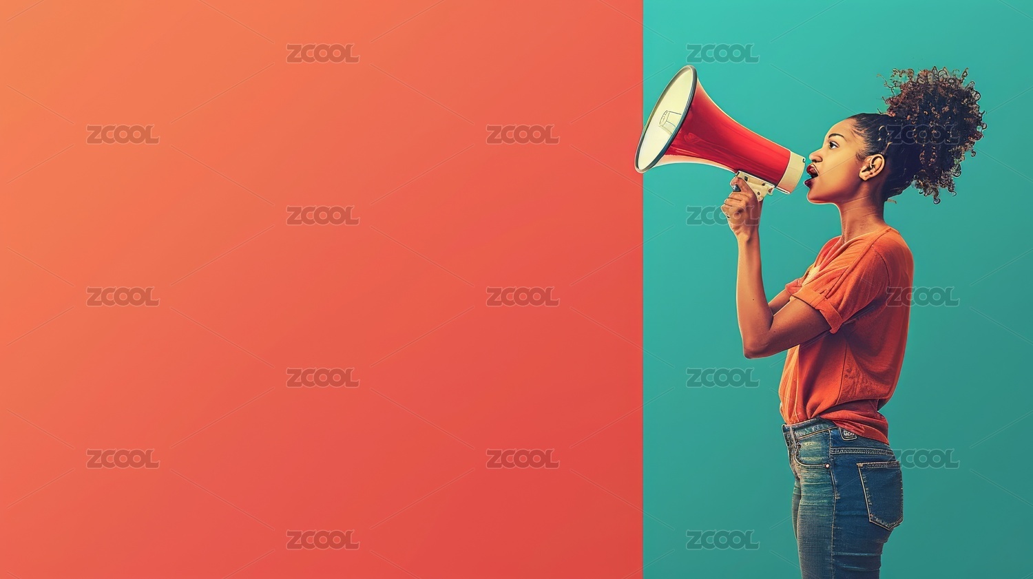 红色背景中的手持扩声器喇叭活动促销配图