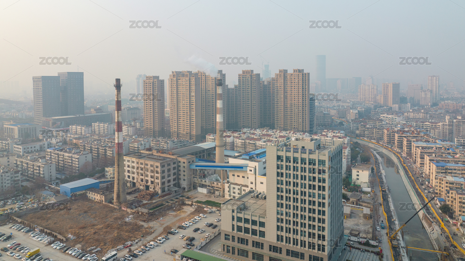 雾霾中的热力供电厂与依稀可见的徐州地标