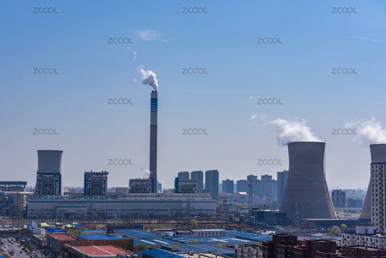都市郊外的热力厂烟囱