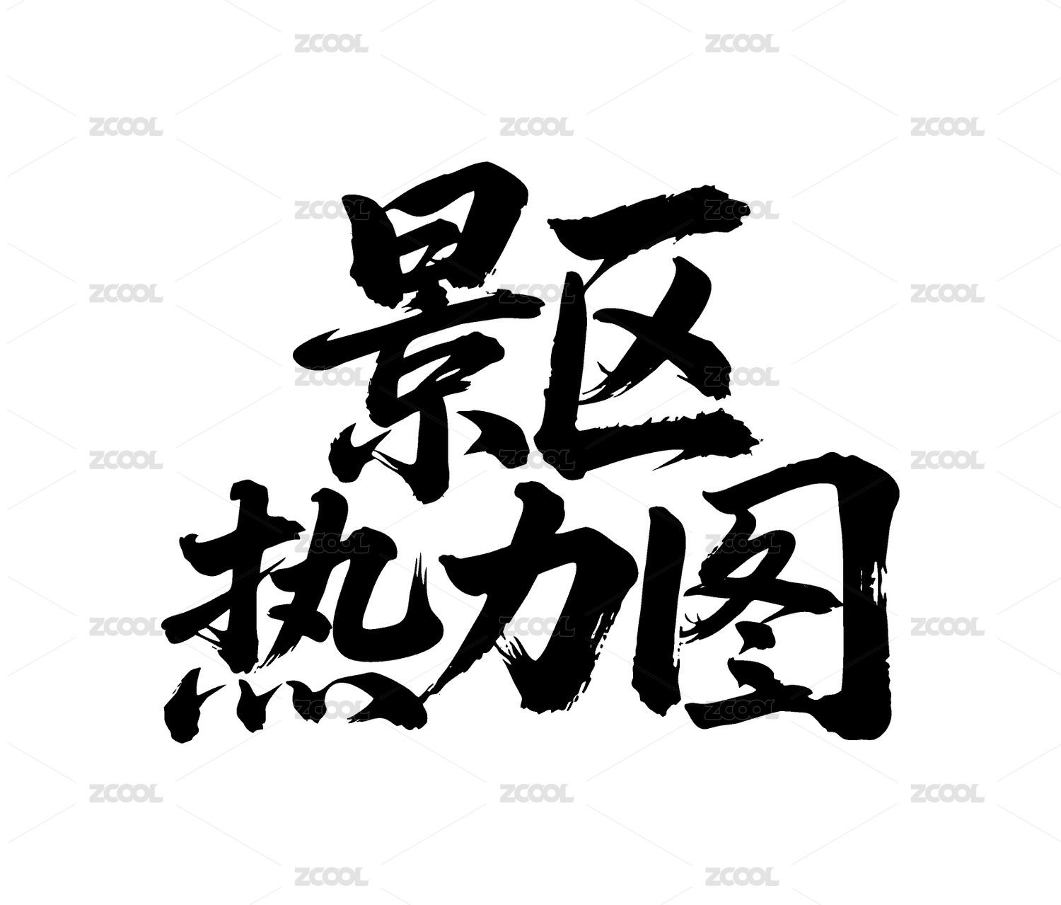 景区热力图矢量书法手写毛笔字
