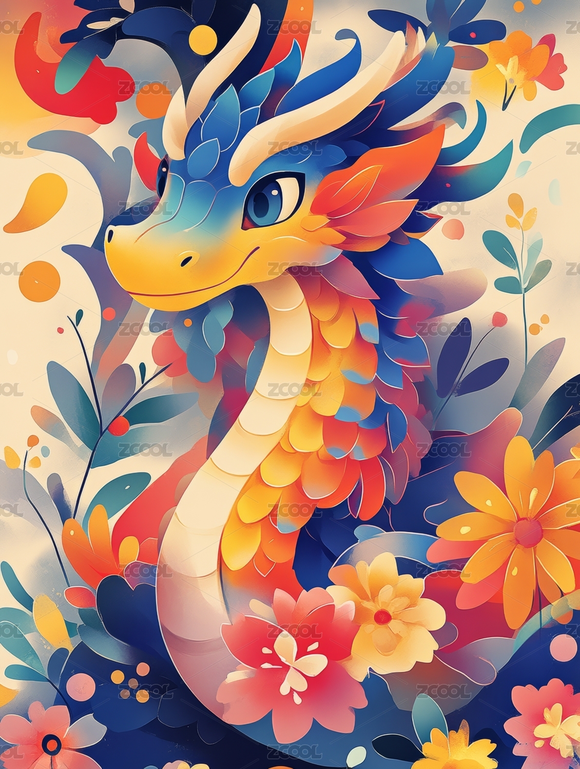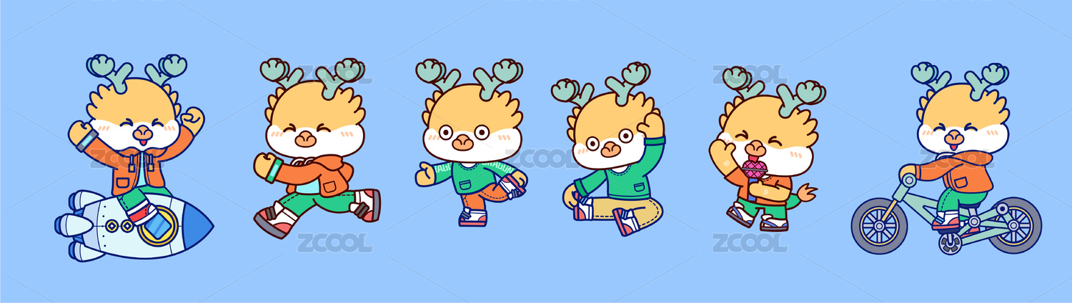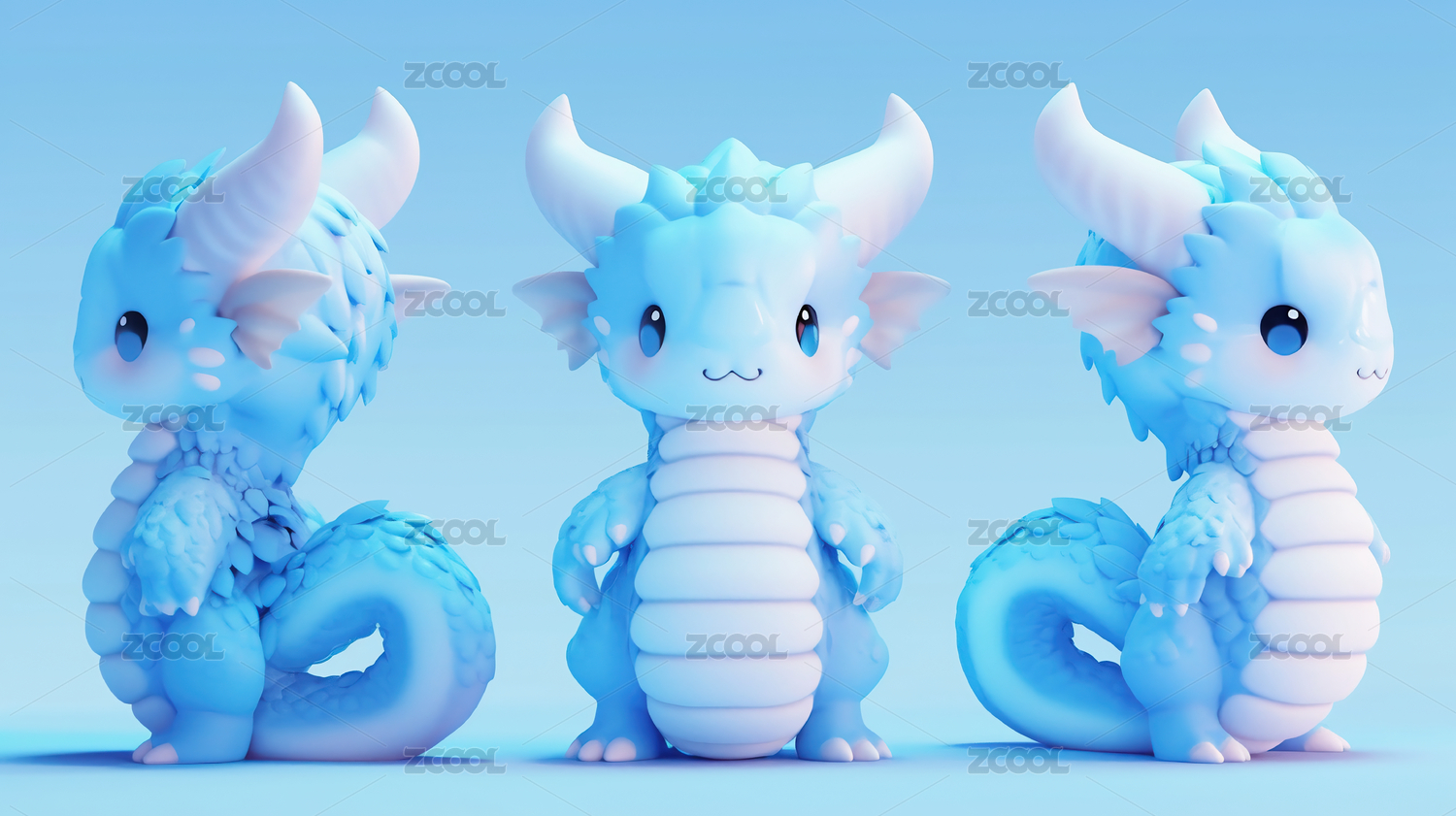 可爱的蓝色小龙卡通形象设计IP设计三视图
