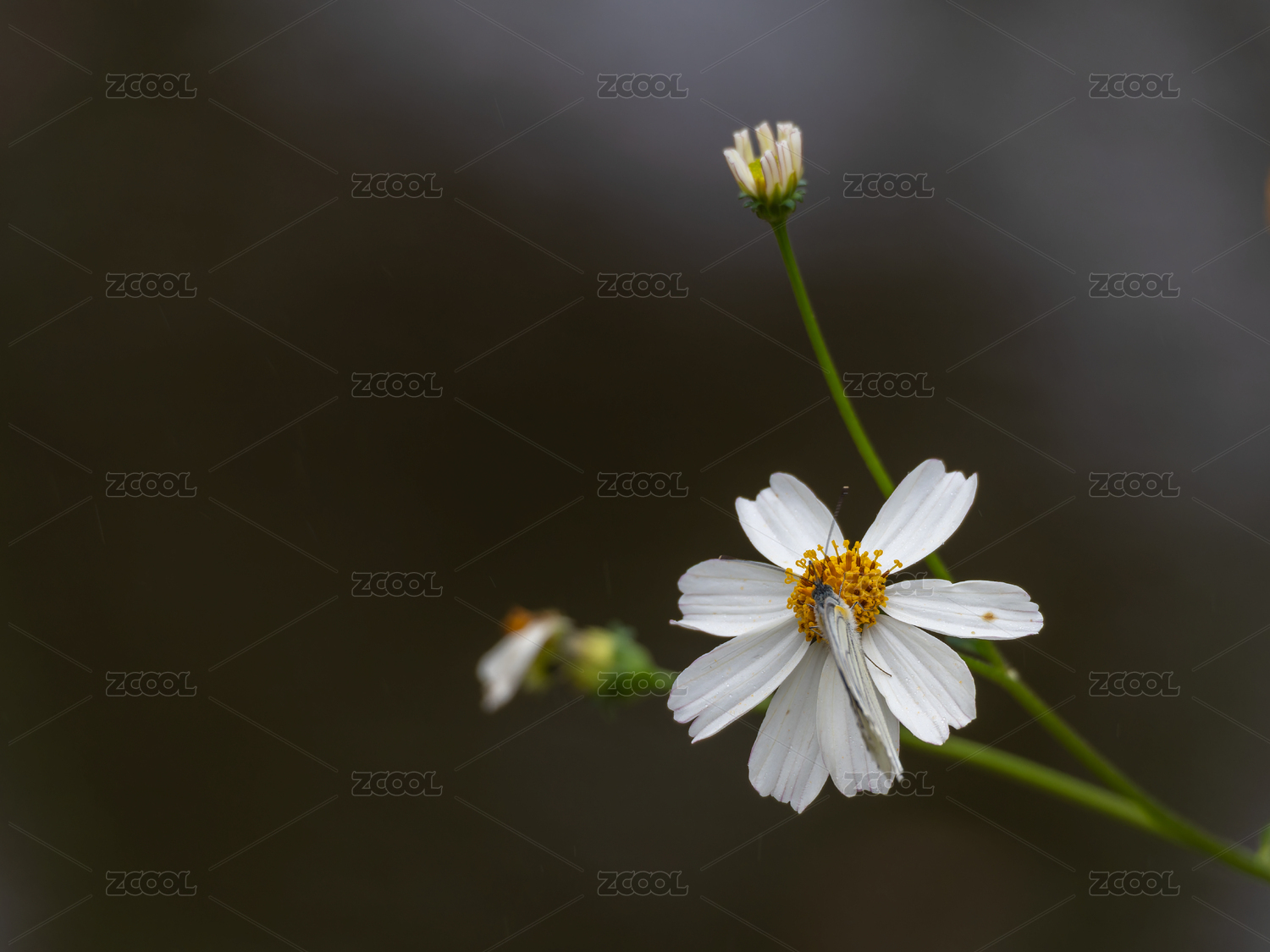 白色背景中的鬼针草果实(Bidens bipinnata)