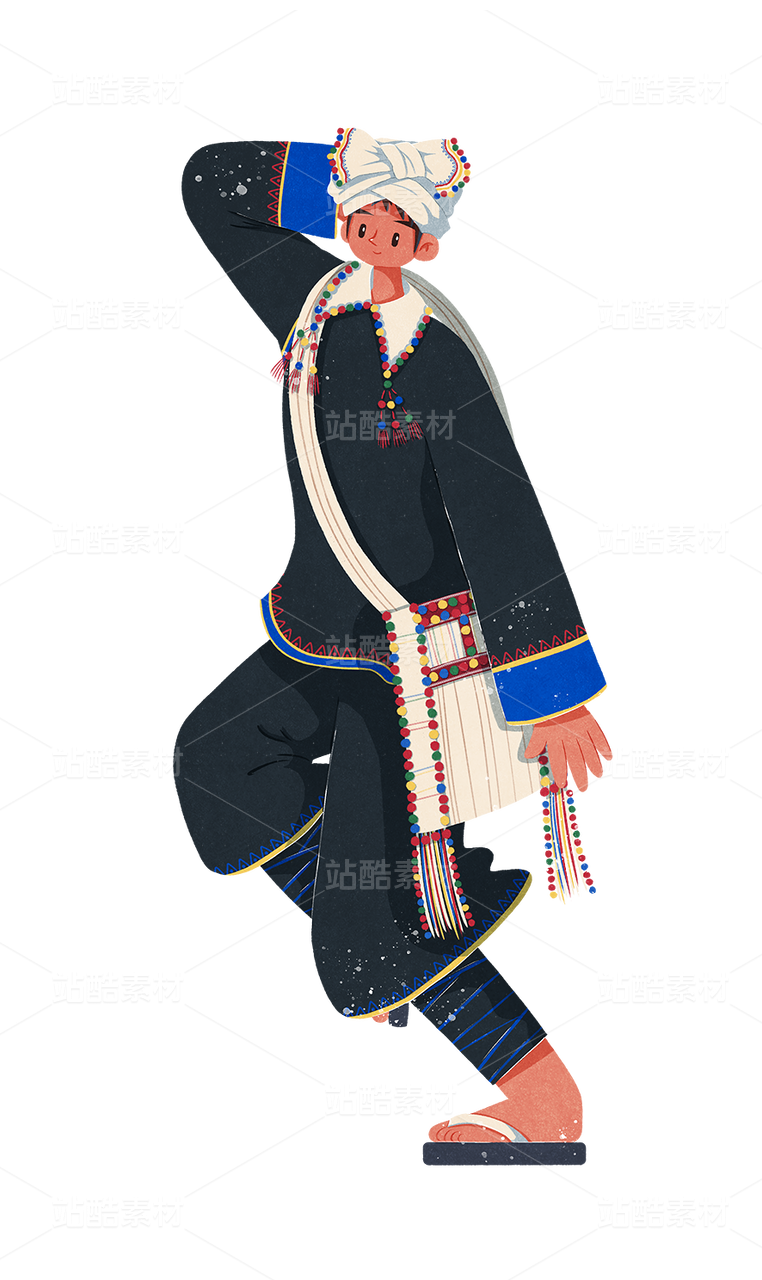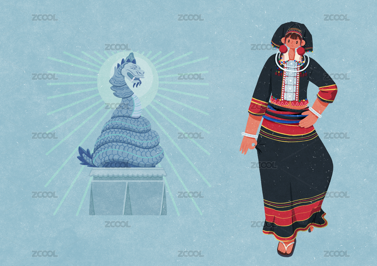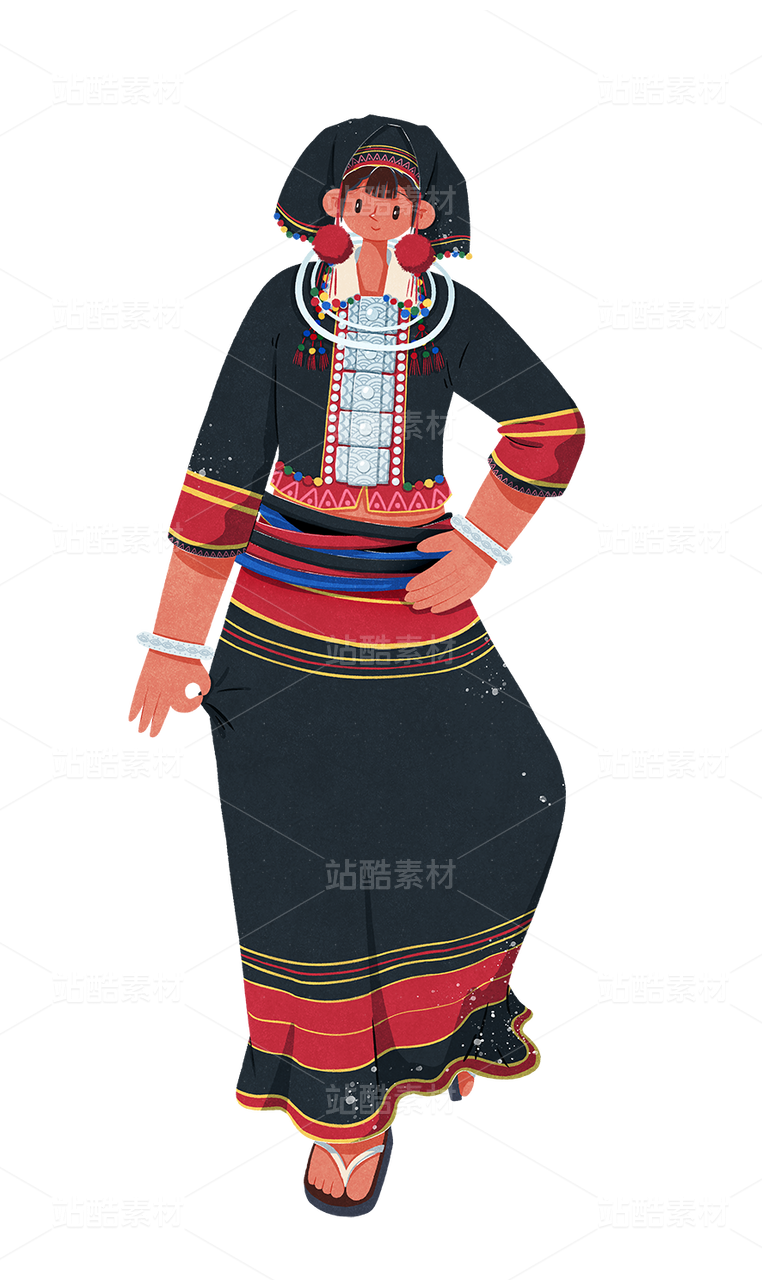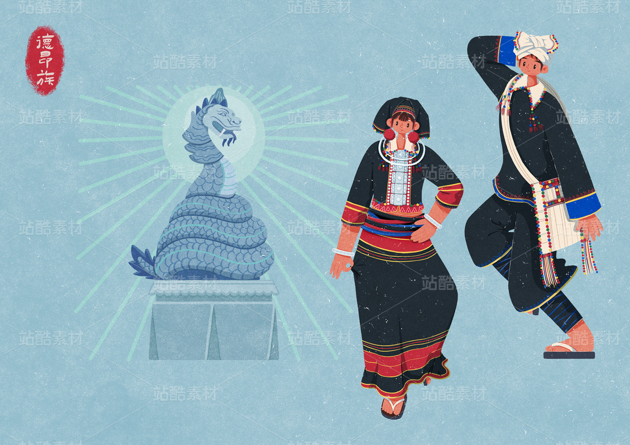 中国五十六个民族德昂族少女盛装女性服饰插画