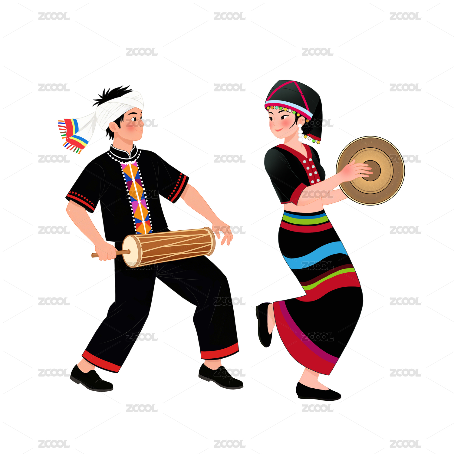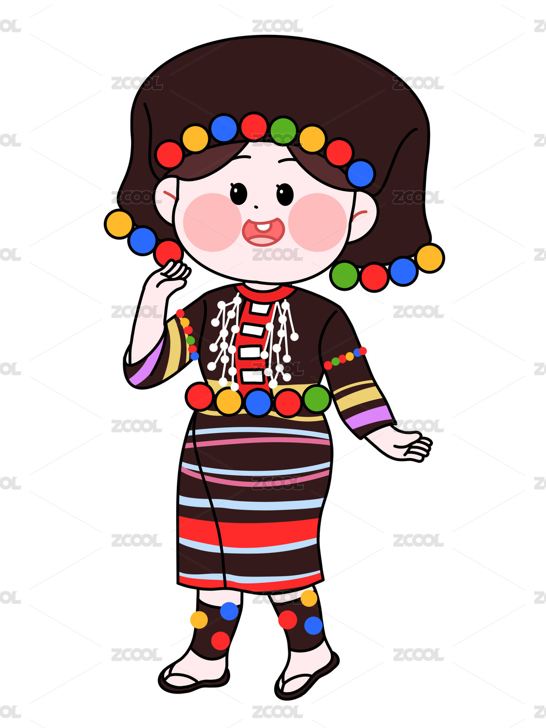 矢量可爱少数民族装扮德昂族达斡尔族傣族
