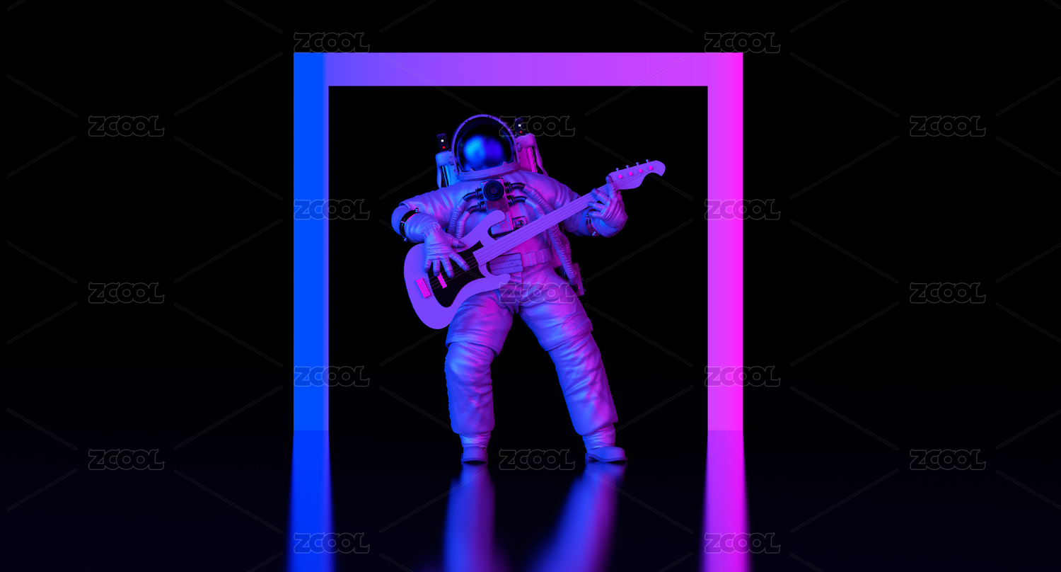 朋克风格的宇航员弹着电贝斯音乐朋克