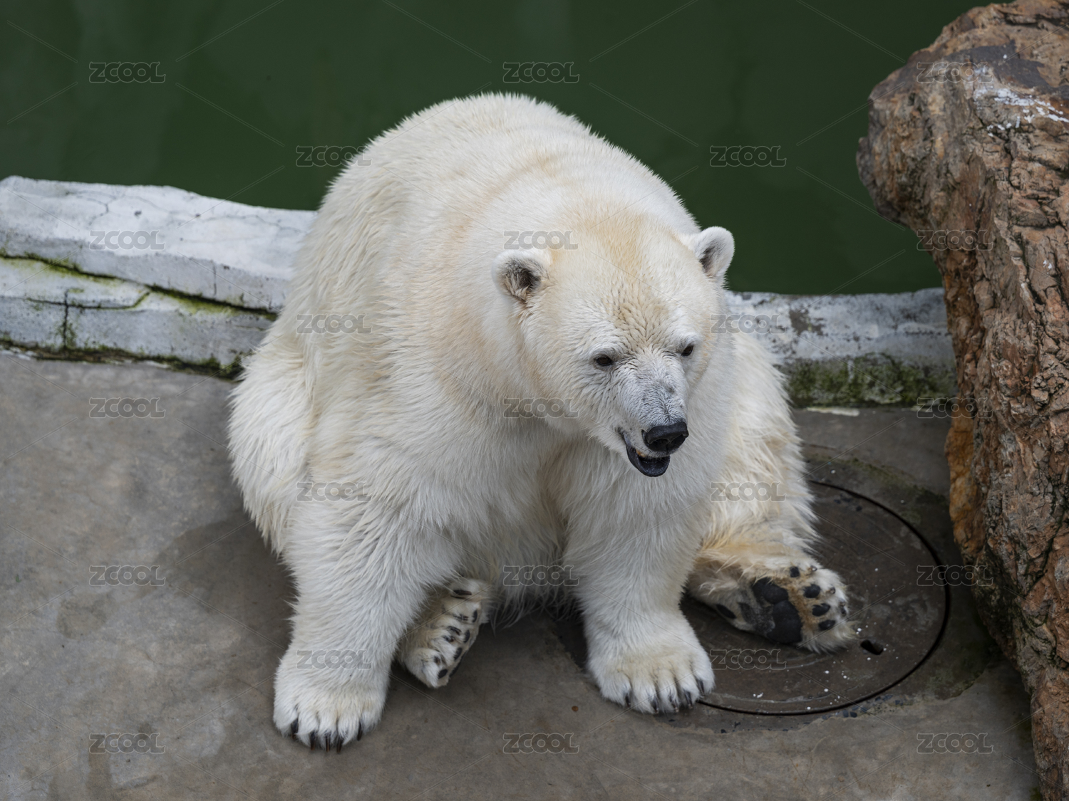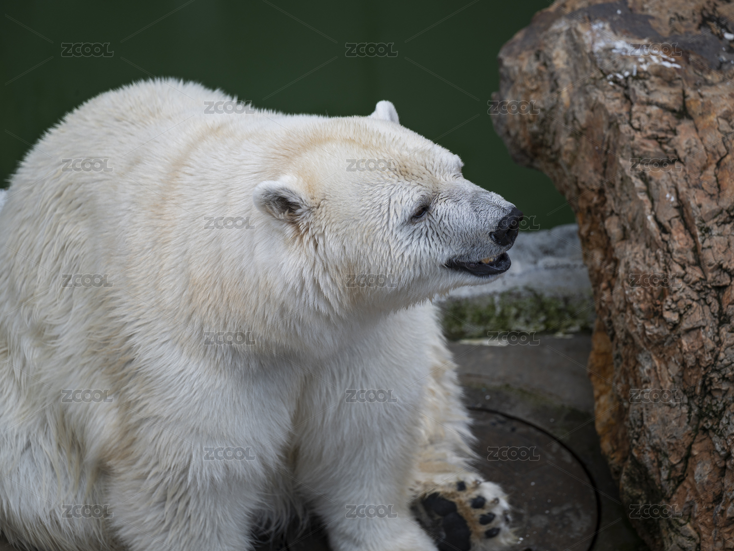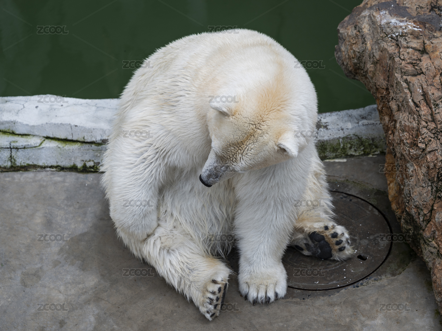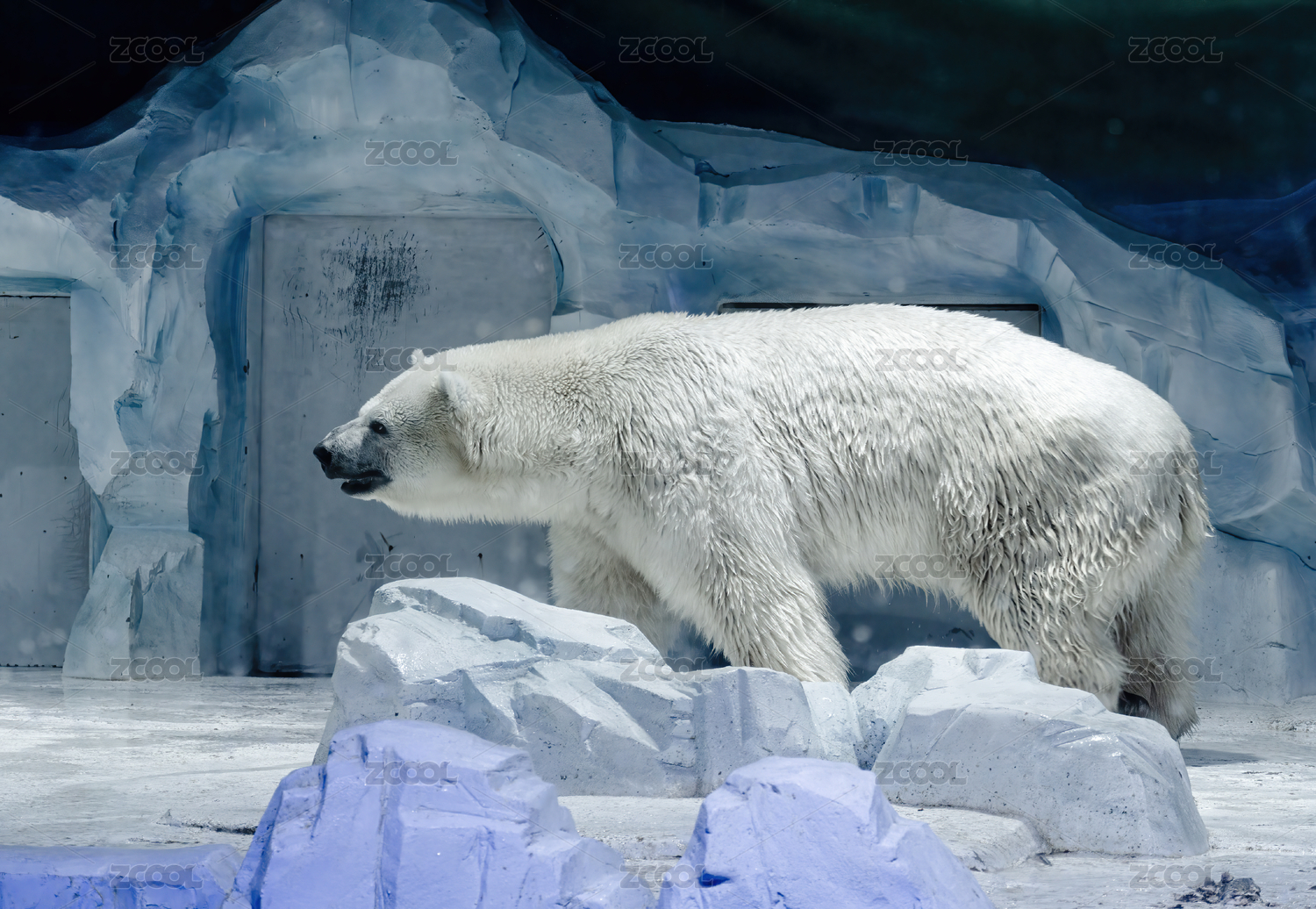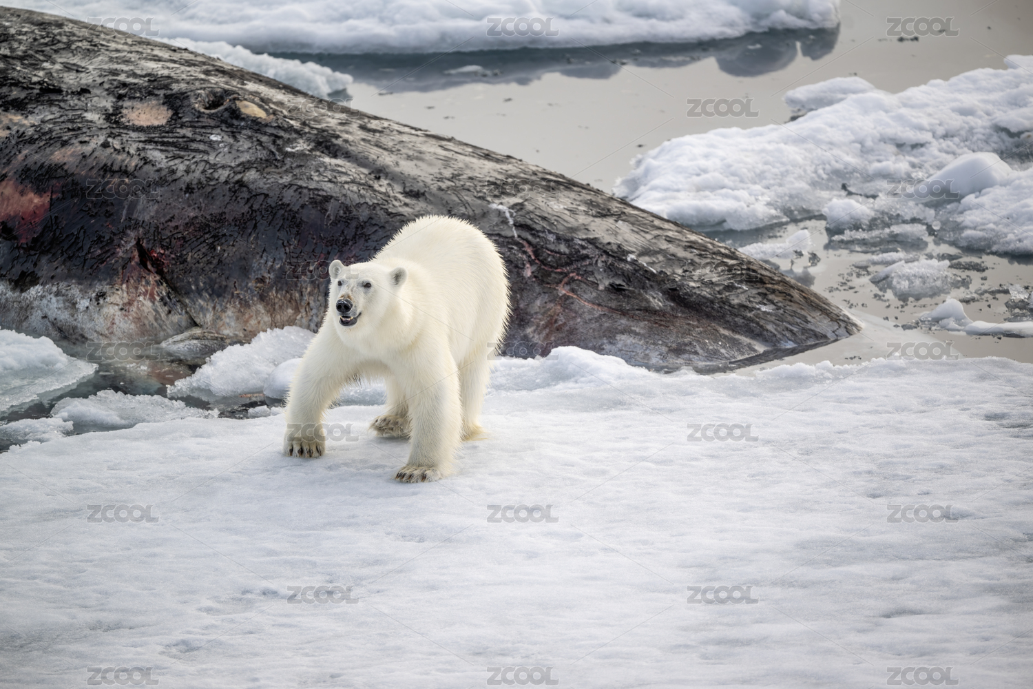 穿着大衣的女孩在雪地上和北极熊拥抱