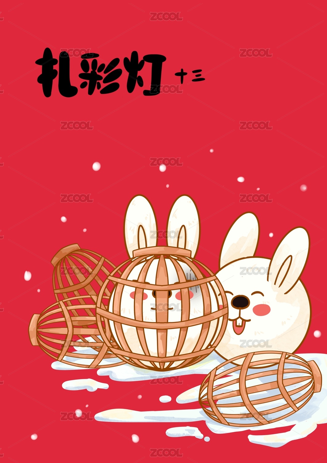 冬季卡通保暖戴帽子围巾雪人小彩灯儿童插画