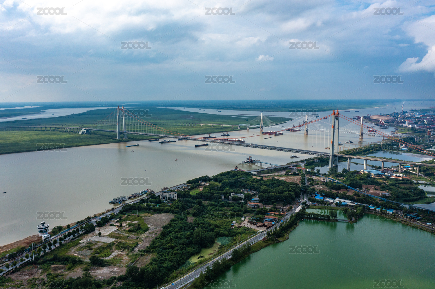 洞庭湖和洞庭湖大桥航拍