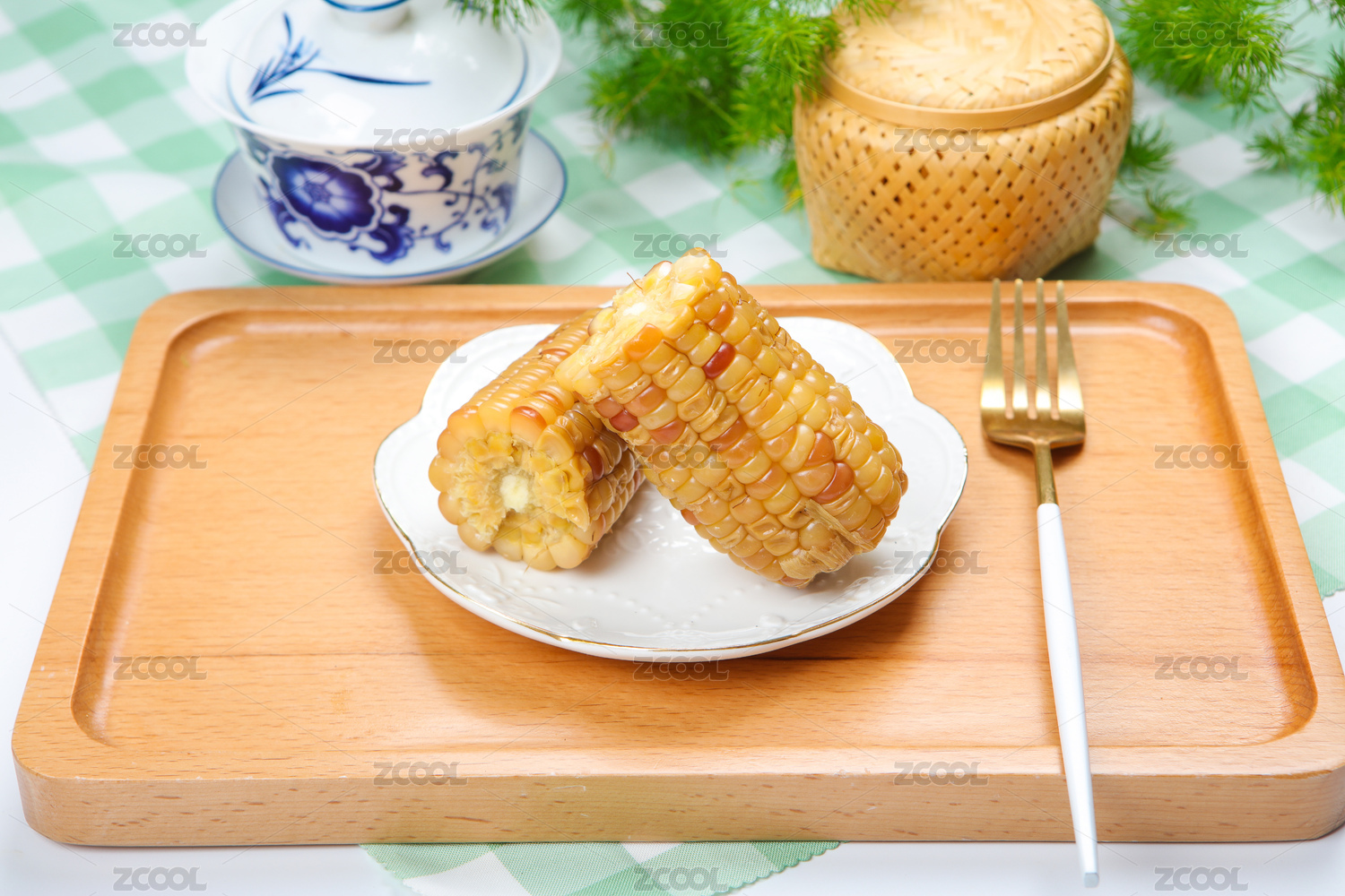 一盘煮熟的花糯玉米软糯香甜可口早餐