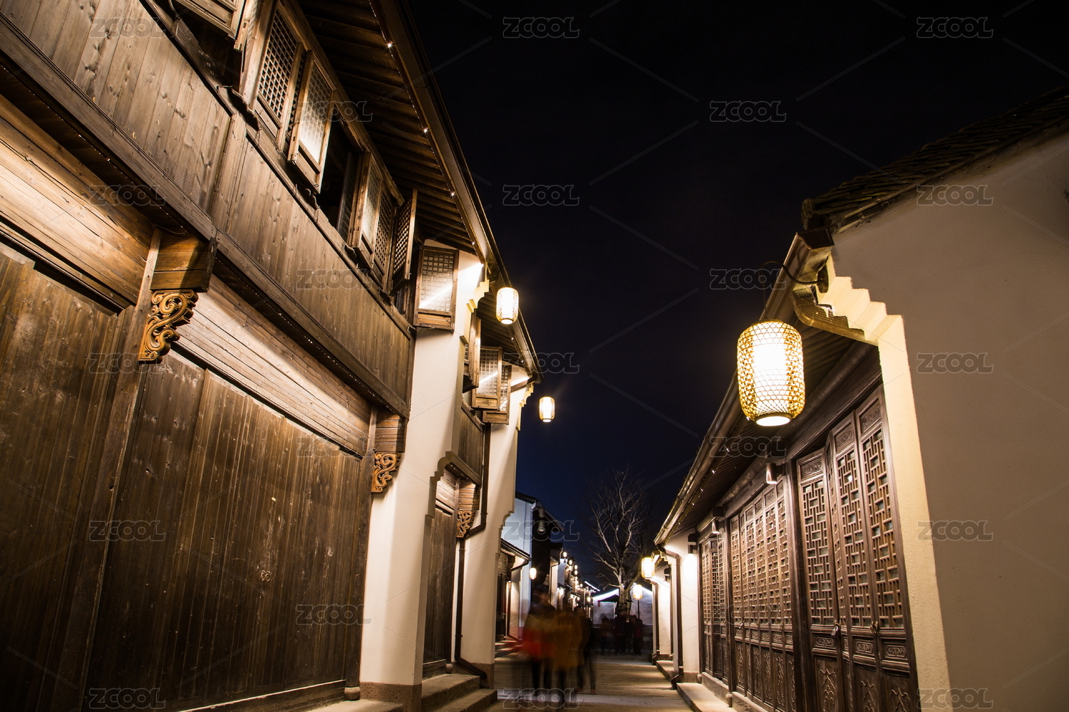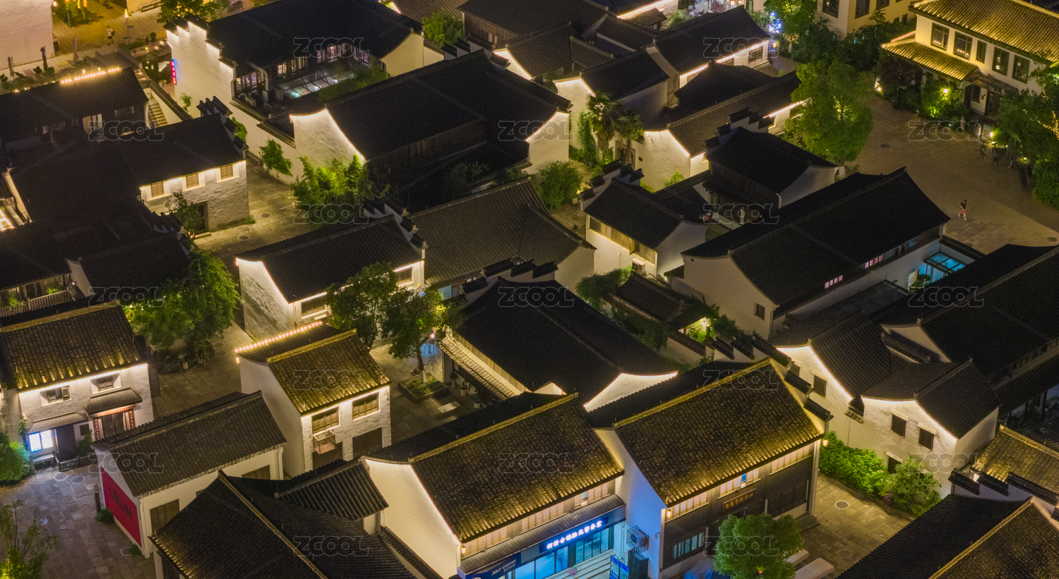 中国浙江杭州仓前老街夜色